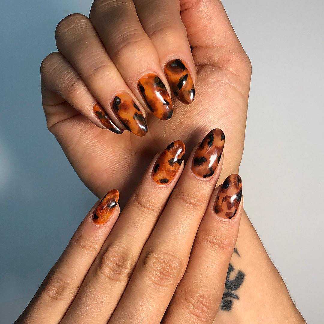 Также очень интересно смотрится черепаховый принт, выполненный в коричневой цветовой гамме и украшенный золотистыми элементами.
