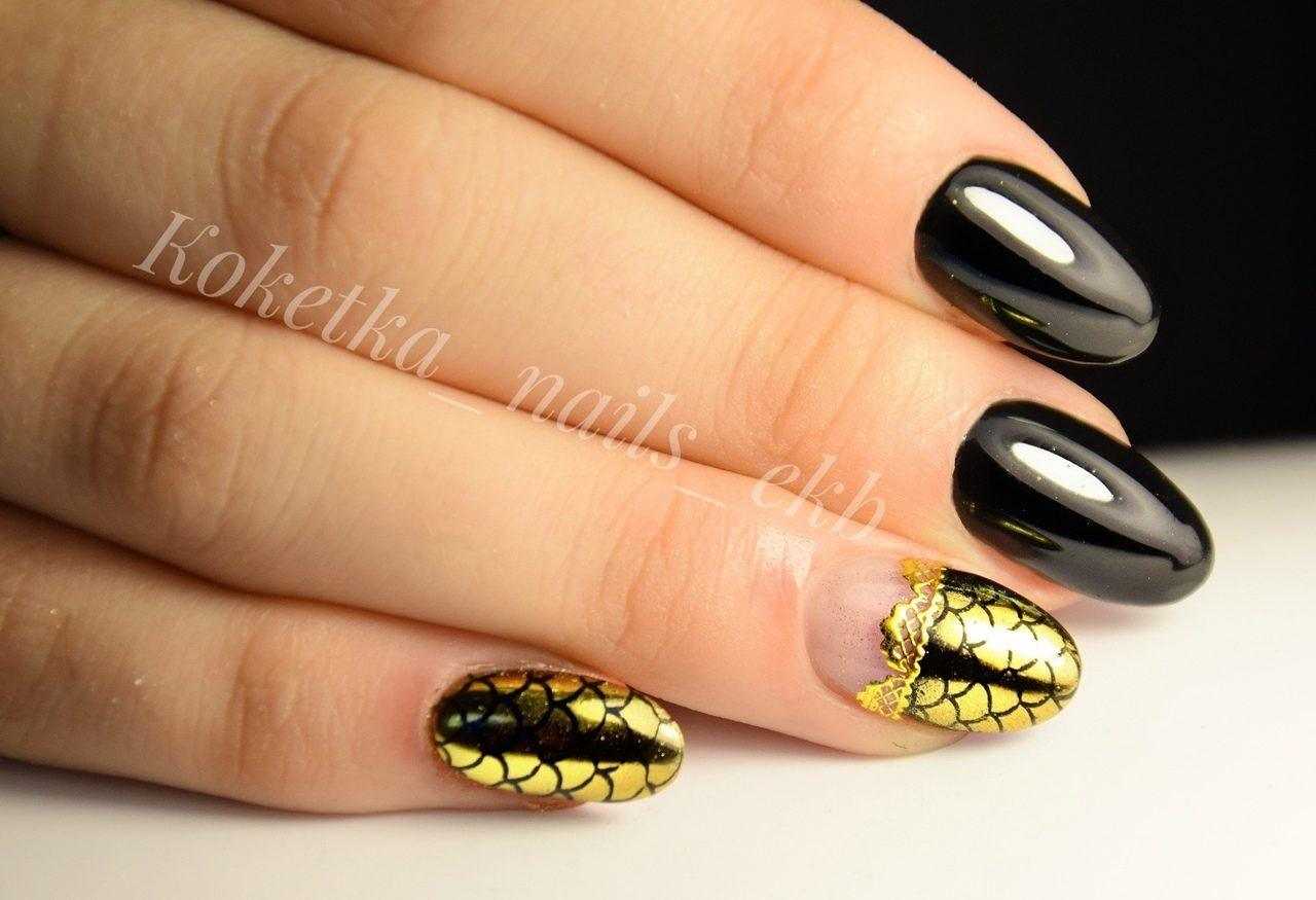 Имитация кожи рептилий предполагает использование приближённых к оригинальным окрасам оттенков, блестящих покрытий, втирки и блёсток.