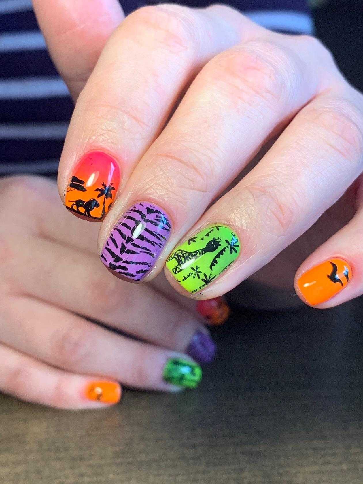 Анималистическое направление благодаря своему большому разнообразию занимает в нейл-дизайне особое место, ведь принт, имитирующий природные окрасы животных, предлагает модницам не один-два варианта. Среди самых востребованных идей сегодня уверенно можно выделить леопардовый принт, который чудесно выполняется несколькими техниками. Модницы могут остановить выбор на классическом рисунке, выбрать технику градиент или использовать яркие и контрастные оттенки. Также актуален леопардовый френч, блестящие вариации лаков, блёстки и стразы.