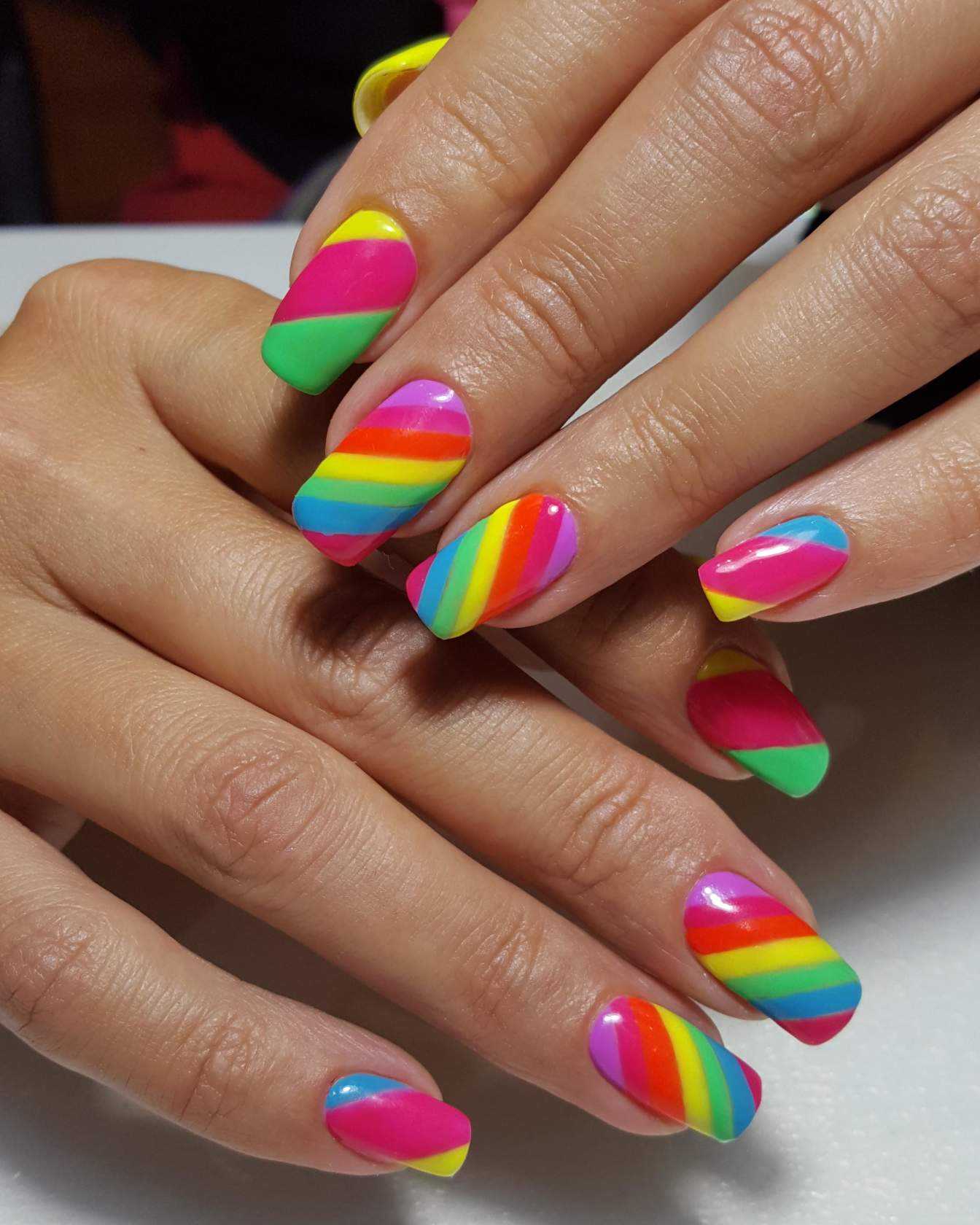 Для маникюра с принтом зебры рекомендованы не менее эффектные идеи. Помимо классических чёрного и белого цветов, характерные полоски и основа могут быть цветными или блестящими.