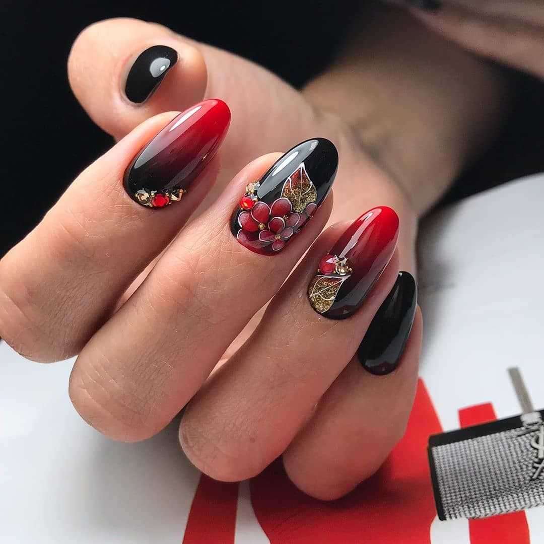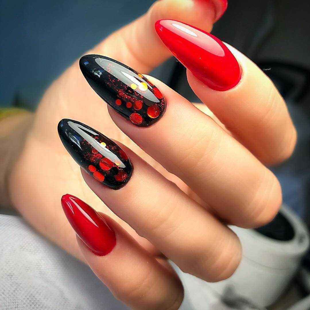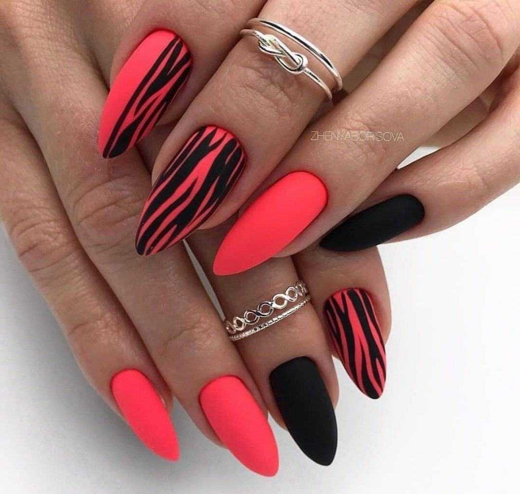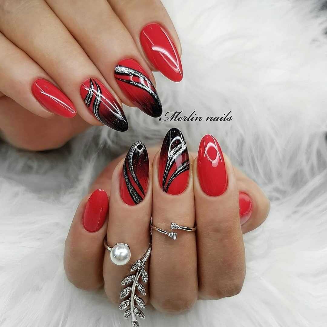 Среди классических решений внимания достойно и красно-черное сочетание. Оно смотрится особенно выигрышно, дерзко. Поэтому его используют в оформлении ногтей достаточно часто. Только представьте, насколько роскошно будет смотреться в таком сочетании френч или геометрический дизайн. Что касается мраморного рисунка, то в таком случае красный цвет выполняет роль основы, а тонкие линии должны быть черными. Наносить их лучше всего специальной кистью. Впрочем в домашних условиях для этого нередко используют простую зубочистку. Конечно же, все это требует практики и только со временем получится создавать удивительной красоты дизайн даже в домашних условиях.
