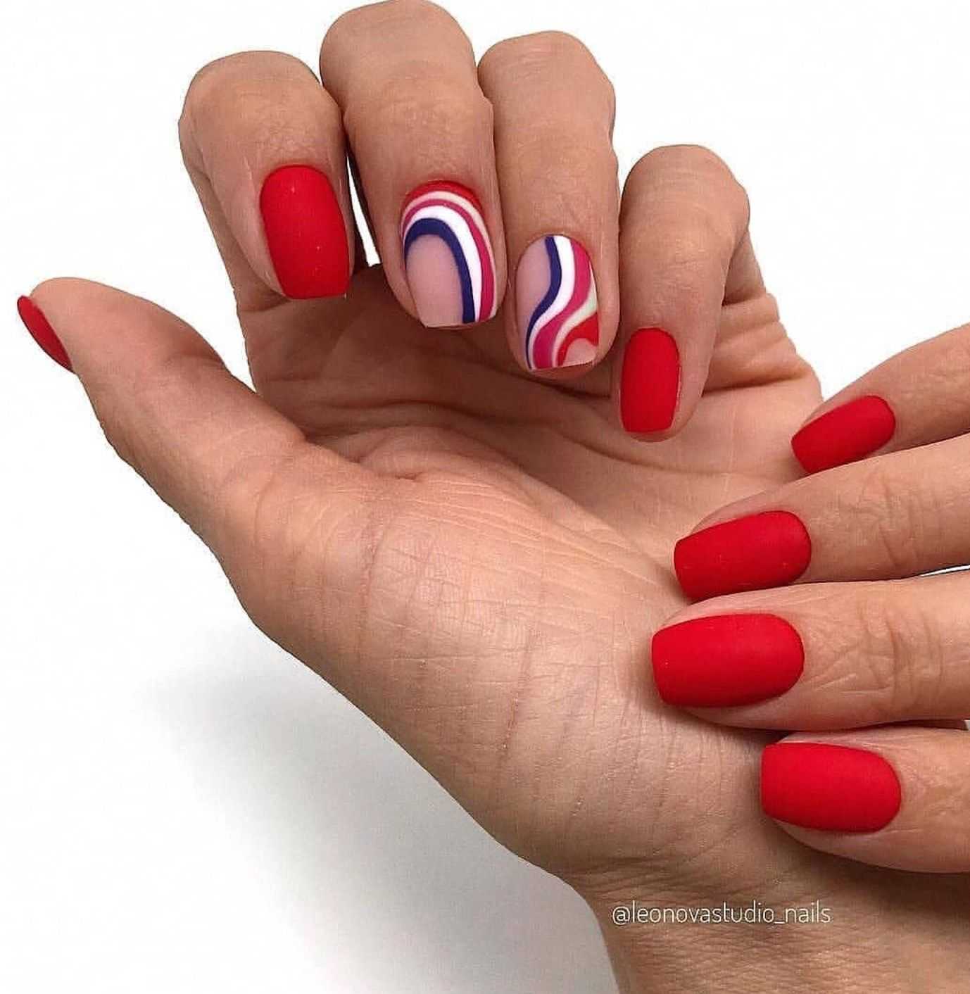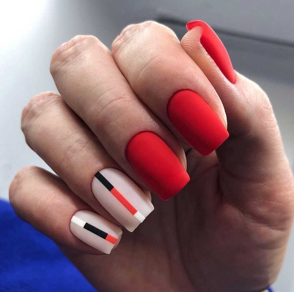 Если вы хотите внести в красный маникюр нотки повседневности, то без белого цвета не обойтись