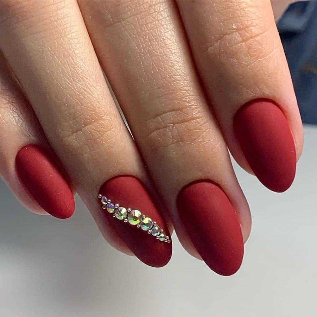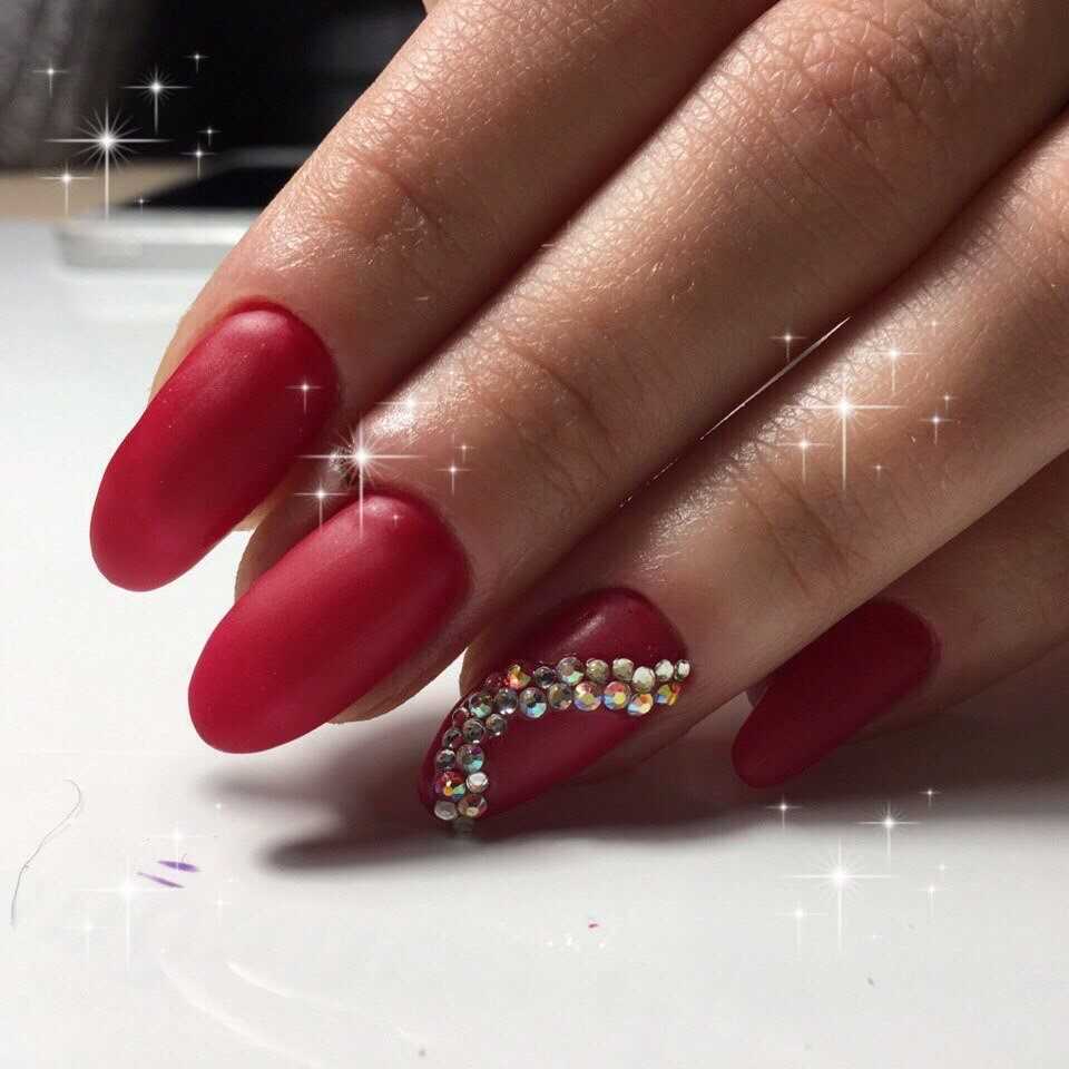 Нейл-мастера отмечают, что стразы особенно красиво смотрятся на матовой текстуре лака. Благодаря этому получается некий контраст, а декор буквально сияет на ноготках. Такой вариант отлично дополняет свадебный образ, поэтому рекомендуем к нему присмотреться более тщательно.
