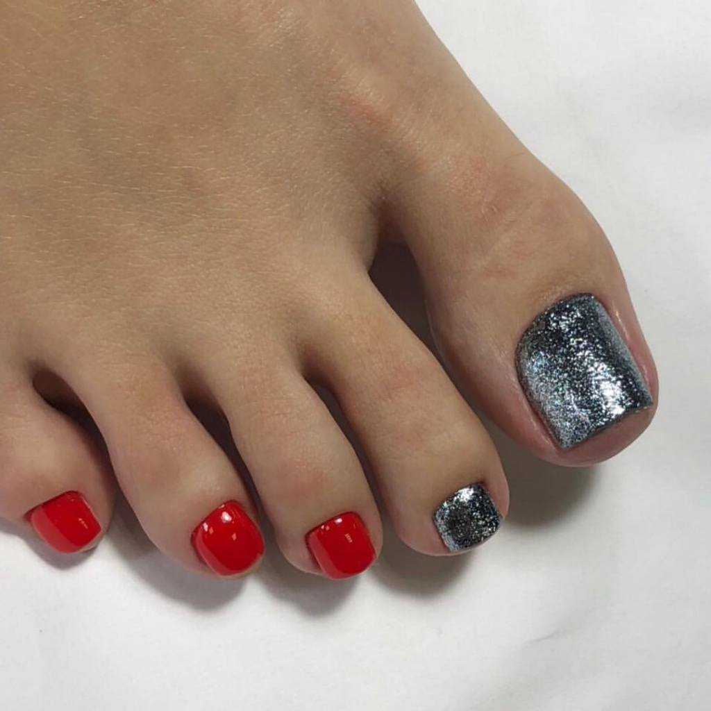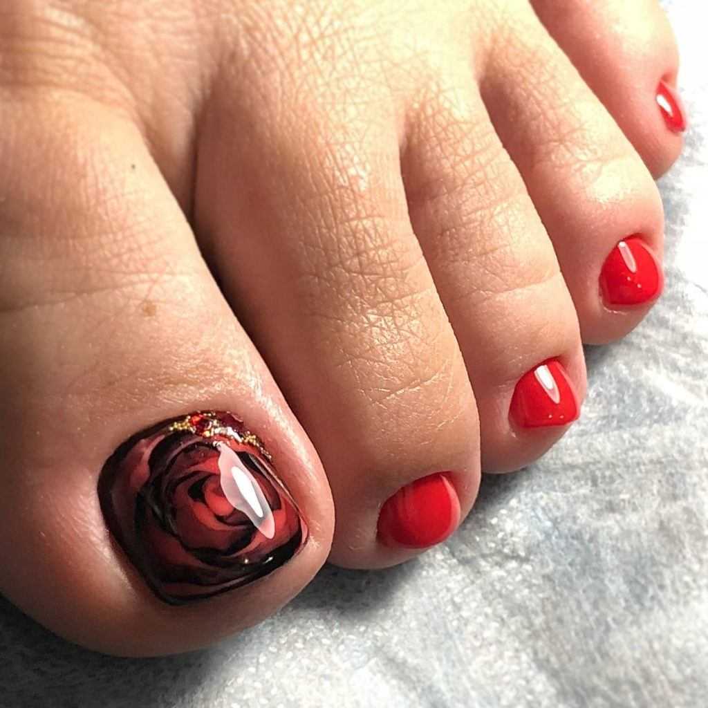 Красно-золотое – поистине королевское и возвышенное сочетание для педикюра. Такое комбинирование сделает внешность идеальной и проявит решительность своей обладательницы.