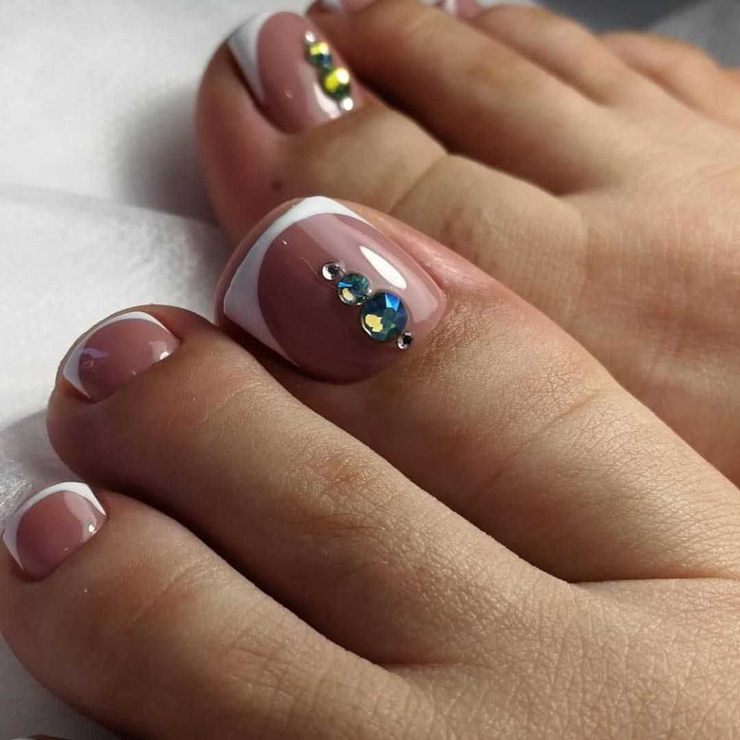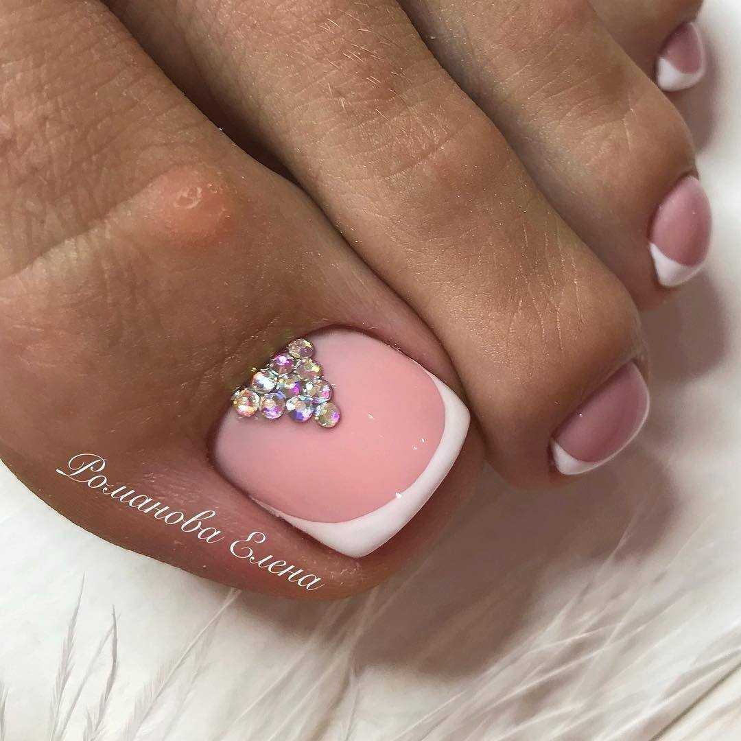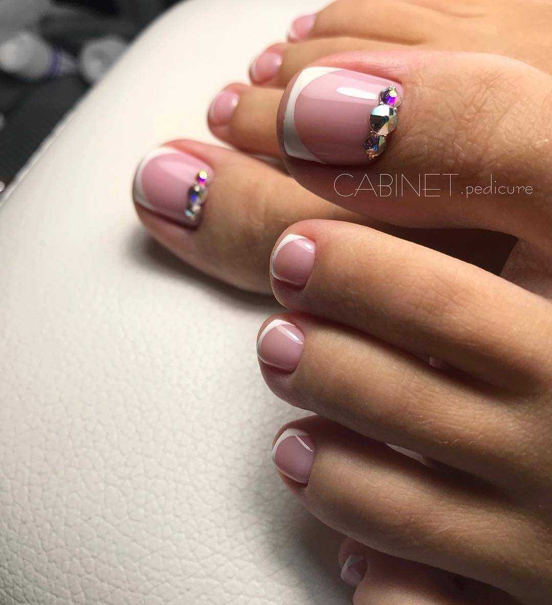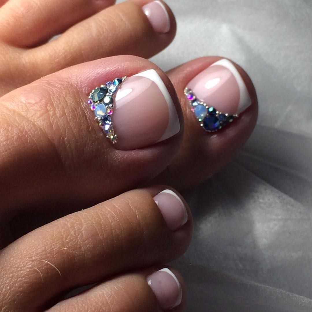 Самые распространённые и модные варианты дизайна педикюра со стразами: