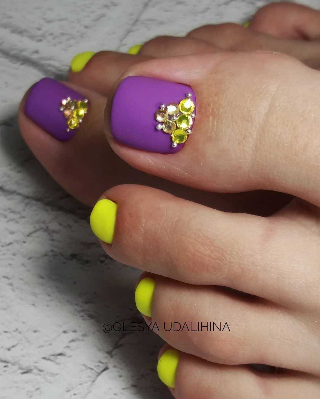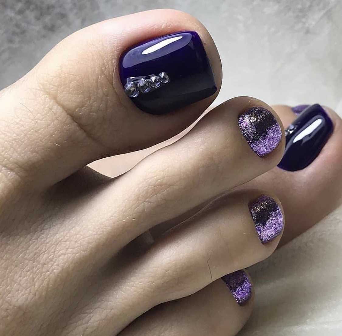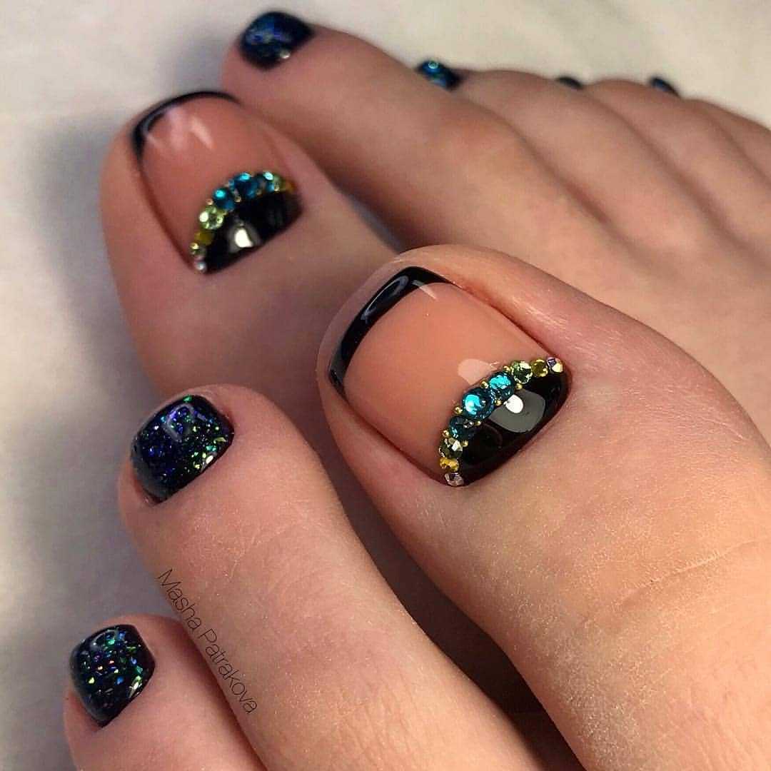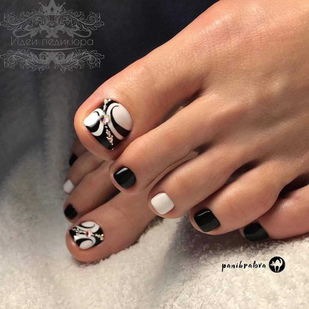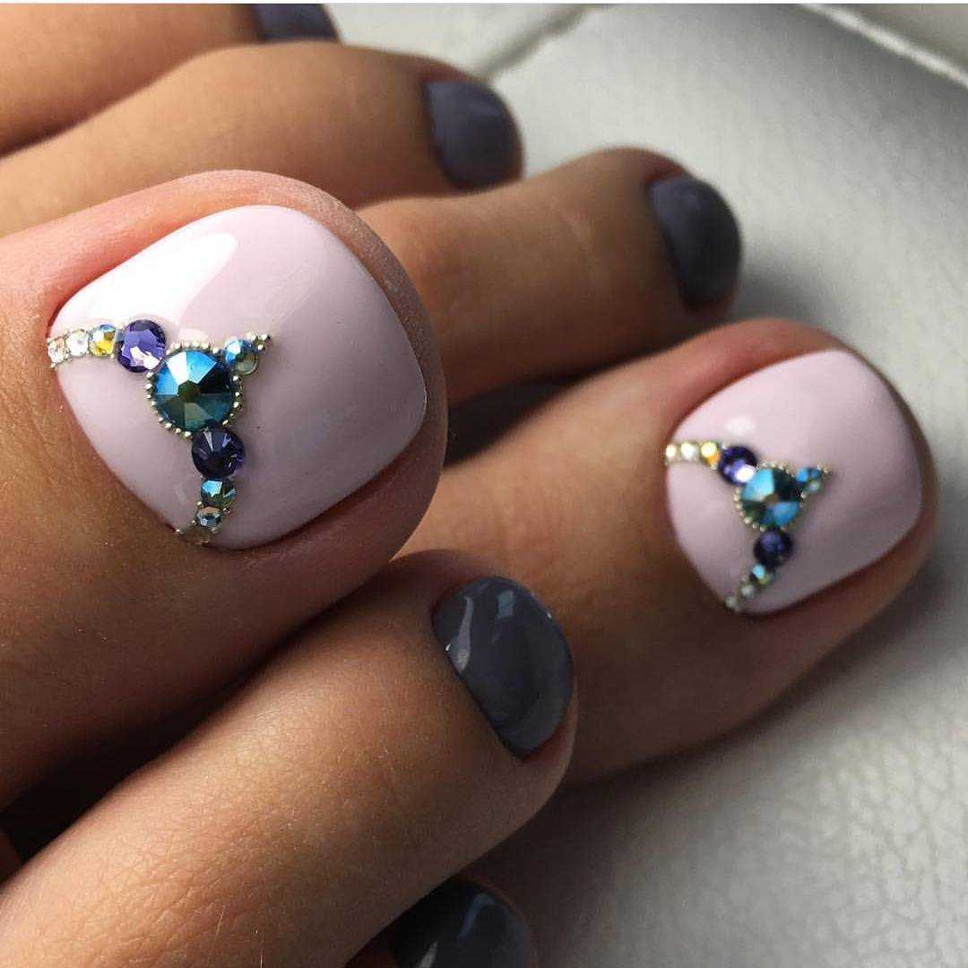 Самые распространённые и модные варианты дизайна педикюра со стразами: