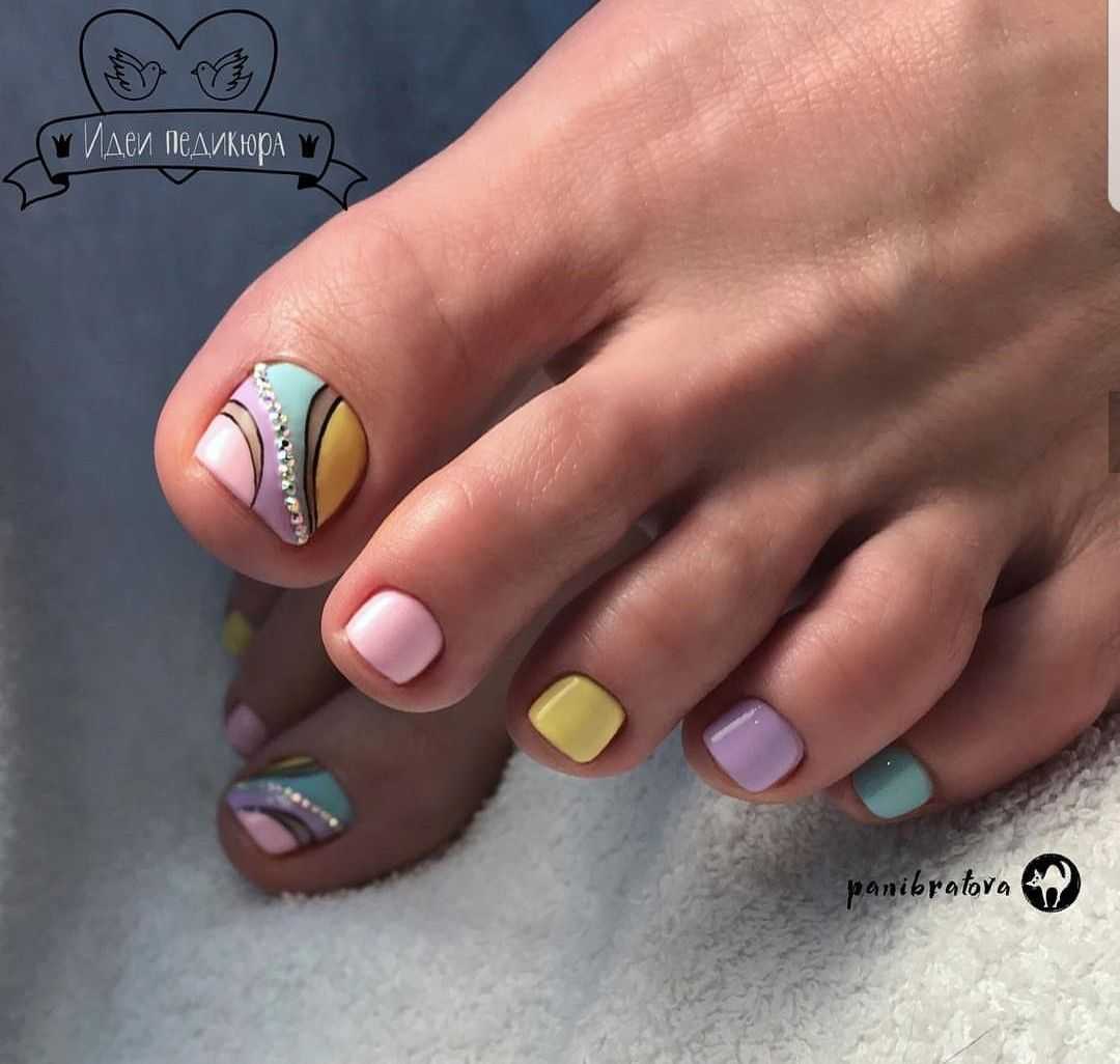 Что касается цветовой гаммы для педикюра, то в 2020 году она будет довольно разнообразной. Все также остаются актуальными пастельные тона. К примеру, лавандовый, голубой, розовый, мятный, желтый, персиковый и другие. Они прекрасно сочетаются между собой, поэтому их часто используют для создания одного дизайна. Также остаются в тренде нейтральные нюдовые оттенки. Конечно, каждый из них имеет свой подтон и смотрится совершенно по-разному.