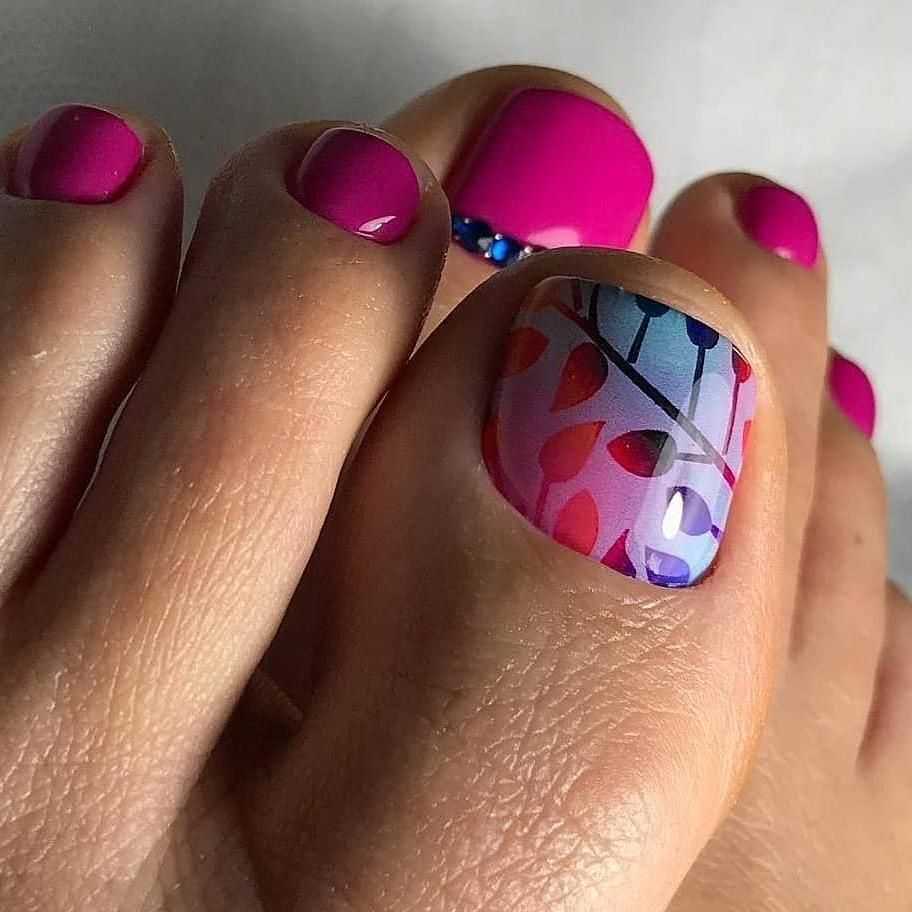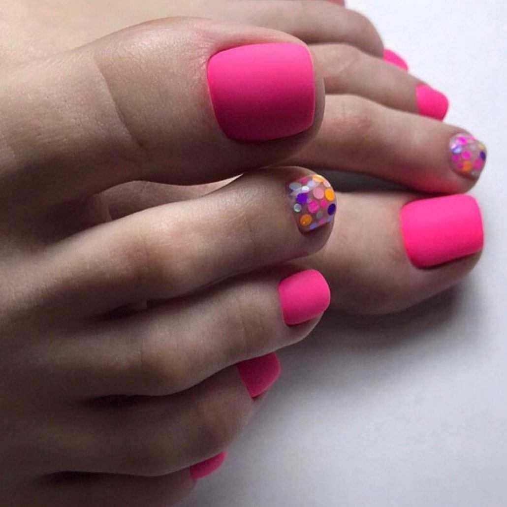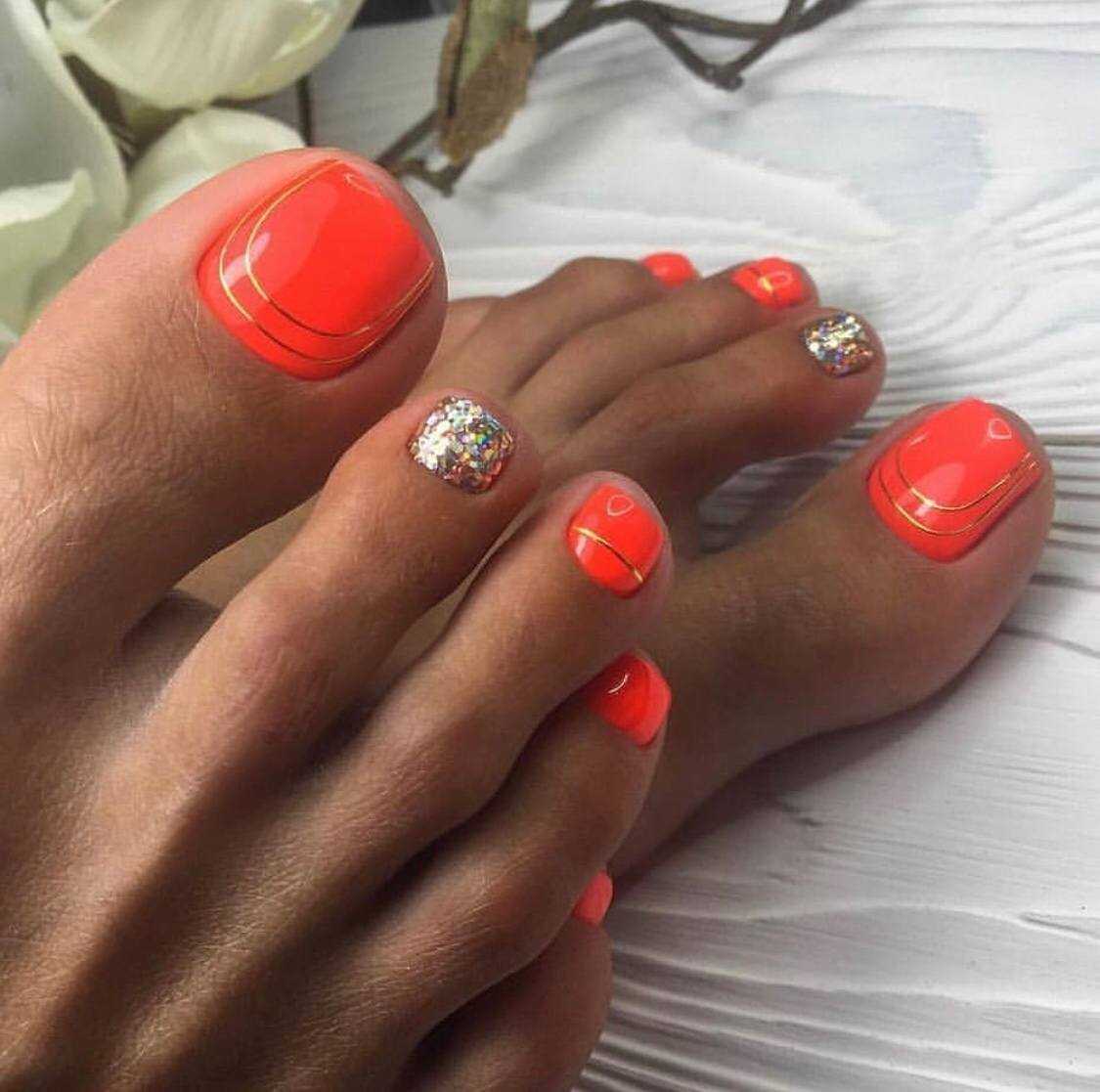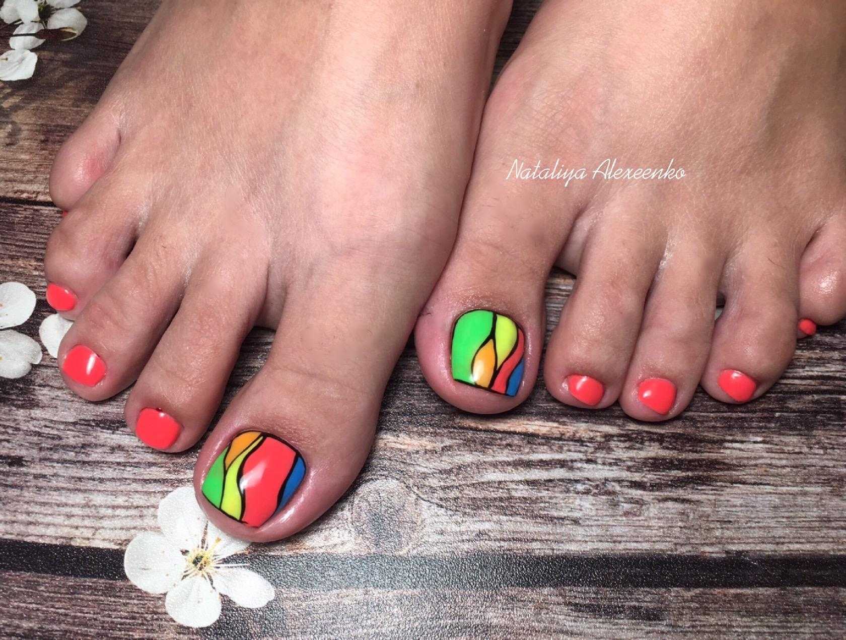 Яркий педикюр – отличный вариант для молодежного летнего образа. Не стесняйтесь использовать сочные оттенки для своих образов, особенно если они сочетаются с вашим образом.