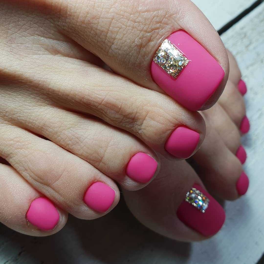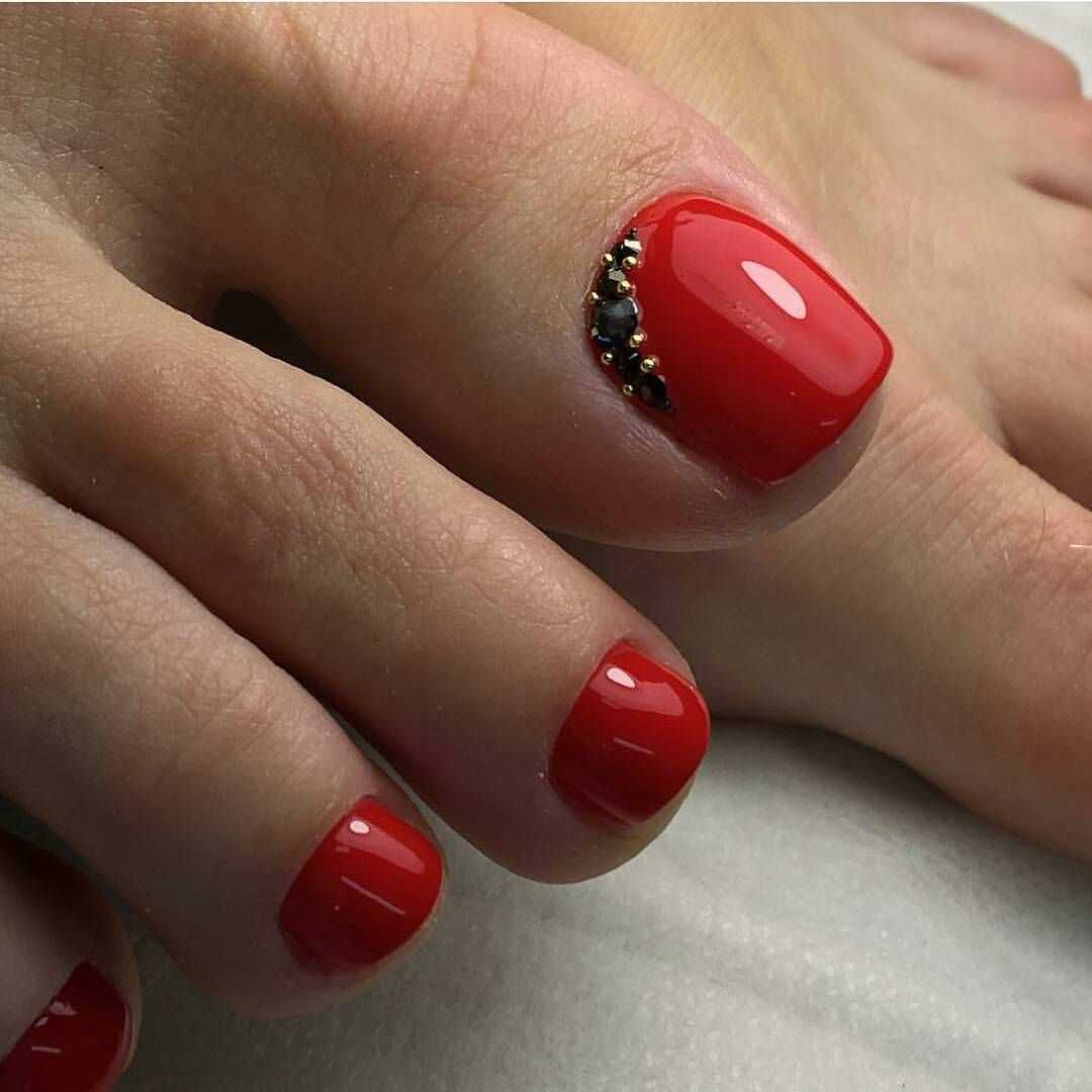Однотонный педикюр можно воплощать в блистательном глянце или в бархатном матовом исполнении. Стразы рекомендуют наносить на большой палец, а если камешки очень маленькие, их можно расположить по одному на каждый ноготок. Стразы можно выложить в хаотичном порядке или в виде определенной фигуры. Самым главным в выборе дизайна для педикюра будет подборка актуального цвета лака. Какой бы вариант Вы не выбрали, прислушайтесь к советам опытного мастера.