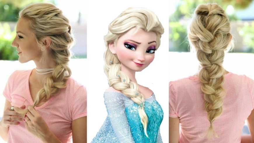 Мультфильм «Холодное сердце» знаком каждой девочке. Все хотят быть похожим на своих любимых главных героев. Анна и Эльза носят прическу, которая называется традиционная коса. Берем три пряди, переплетая их между собой. Второй вариант – французская коса, обрамляющая голову и небольшой пучок-пончик сзади.