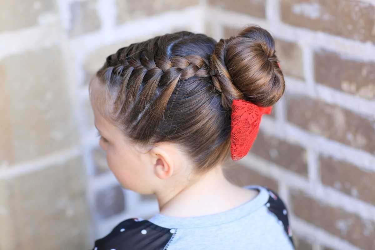 Пучок — универсальная и аккуратная прическа, которая полностью открывает лицо девочки, и хорошо держит волосы. Кроме того прическа хорошо смотрится, а выбивающиеся волосы не будут мешать ребенку сосредоточиться на учебе.