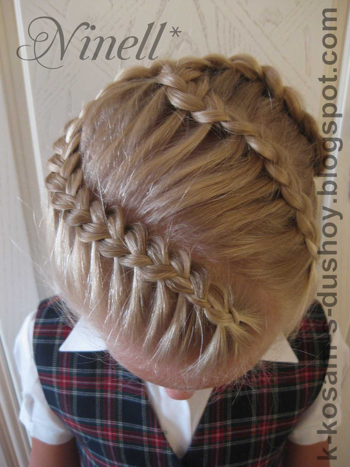 Косы — современное плетение кос открывает простор для Вашей фантазии. Вариантов техники плетения множество и для младшего школьного возраста, и для старшеклассниц. Девочкам начальной школы заплетайте косы потуже, чтобы они не растрепывались и не мешали во время занятий.