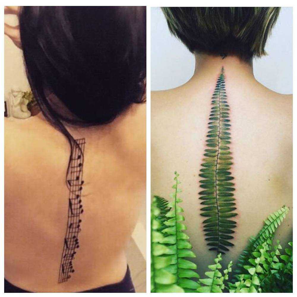 При выборе места для нанесения татуировки все чаще приходят к решению изобразить ее на спине. И это не случайно, ведь на этой части тела можно нарисовать как маленькие рисунки, так и масштабные изображения, ведь разгуляться есть где. Очень часто можно увидеть на спине эффектные, необычные и интересные изображения в виде растений, расположенных по всей длине позвоночника (колосок, хвойные, листва, полевой цветок). Очень популярны акварельные и геометрические изображения, в которые стоит вложить весь характер и настроение обладателя. Например, очень оригинально будут выглядеть такие тату, как Питер Пэн или Алиса, падающая с горы книг, дух природы в виде личностного оберега, паучок в центре спины, спускающийся по паутинке или поэтапное затмение по вертикали.