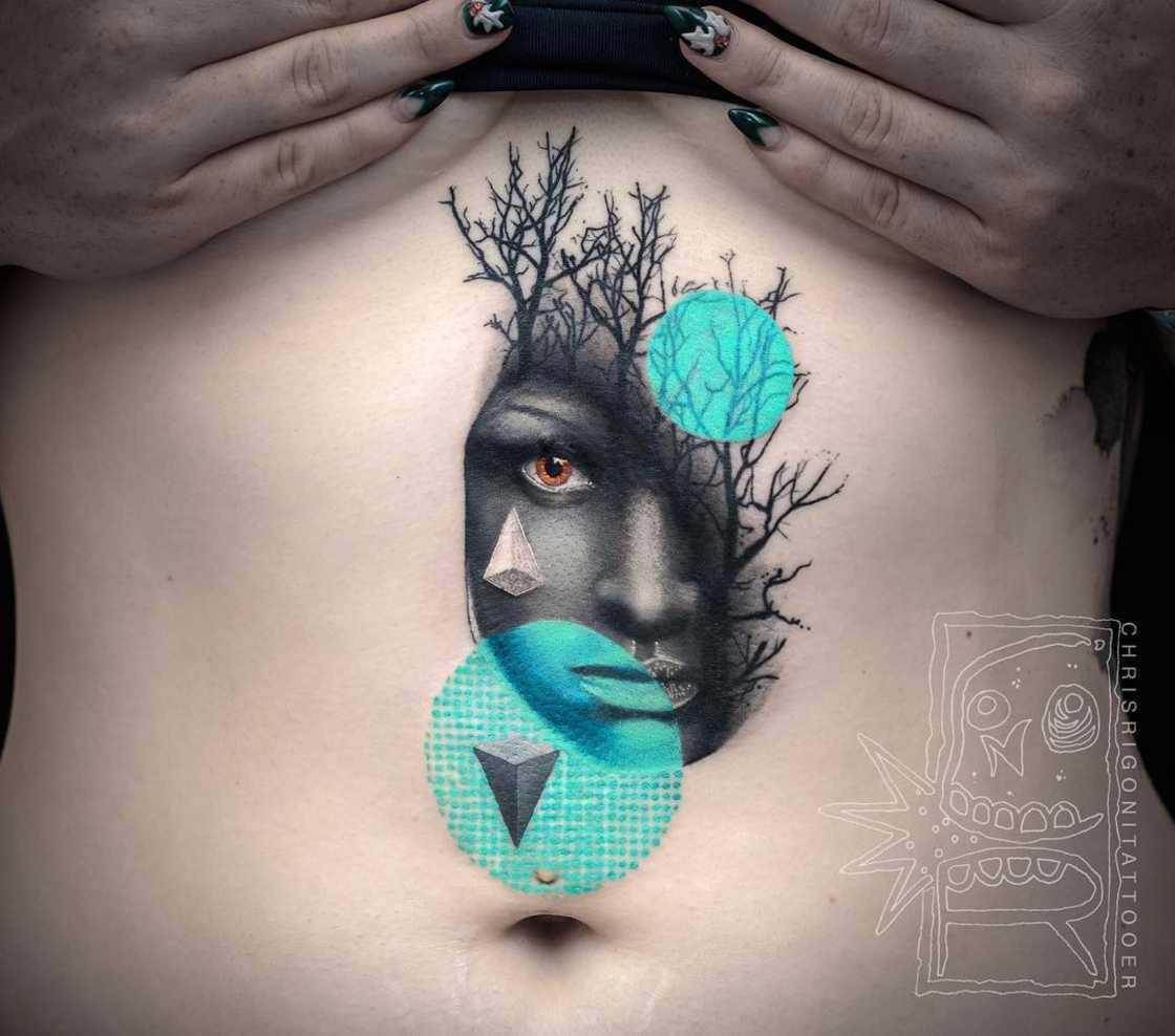 Главным преимуществом цветного тату является его броскость и возможность полностью выразить смысл и характер. Яркие контрастные цвета характерны для смелых, неординарных личностей со взрывным нравом и оптимистичной точкой зрения по жизни. Наиболее уместны яркие тона в технике акварель, реализм и треш-полька. Необычно и привлекательно выглядит полностью забитый рукав цветами или другими элементами, яркий цветок на какой-либо части тела. Очень часто встречается слияние стилей в очень красивом и ярком нательном рисунке. Цветные тату выполняют как мужская, так и женская половина.