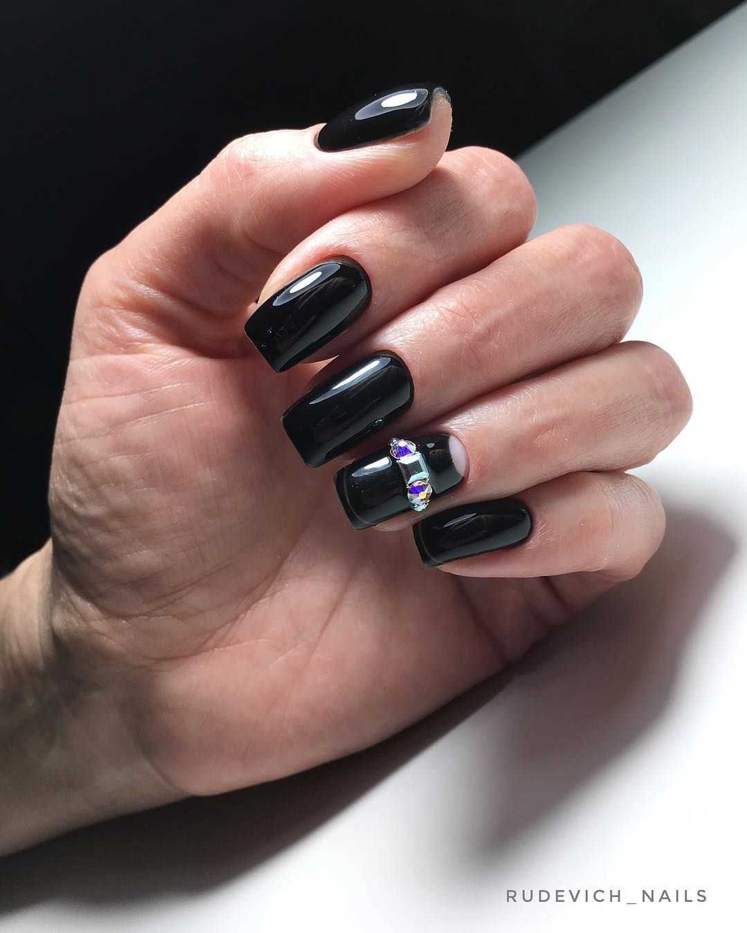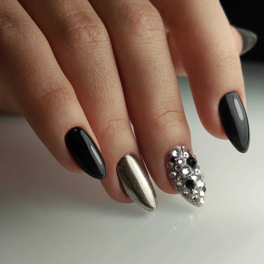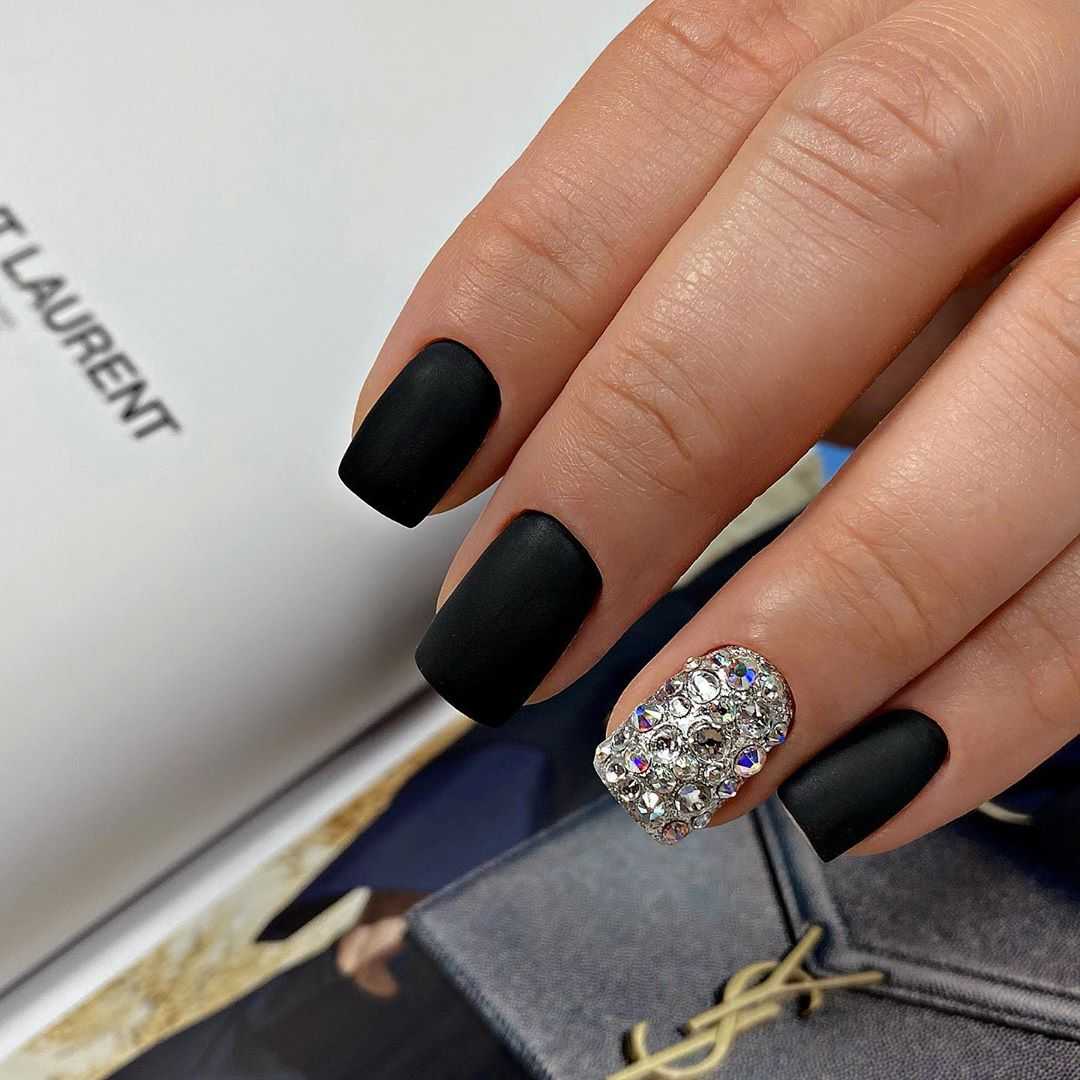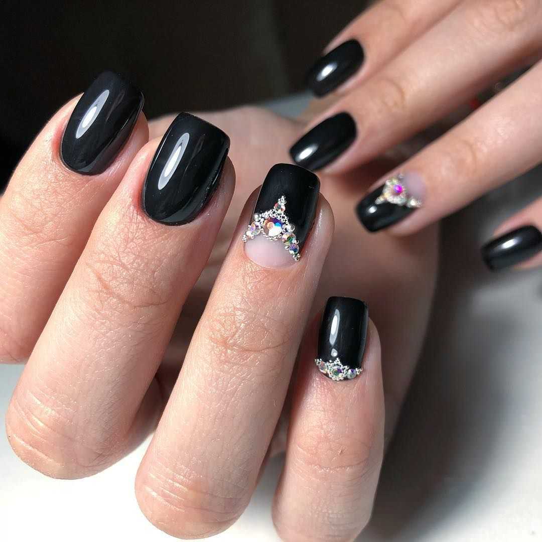 Как вы смогли убедиться, чёрные ноготки могут смотреться не только ярко и чересчур выразительно. Благодаря многочисленным техникам и современным вариациям оформления такой нейл-дизайн к лицу каждой даме, даже если вы очень нежная и скромная особа. Попробуйте поэкспериментировать с этим неординарным оттенком, и мы уверены, результат вас приятно удивит. Далее предлагаем вашему вниманию подборку потрясающих идей чёрного маникюра со стразами, которые помогут вам быстрее определиться с выбором и подобрать идеальный для себя вариант.