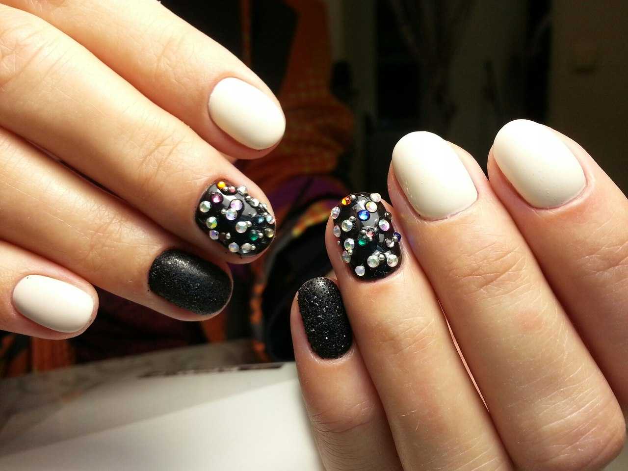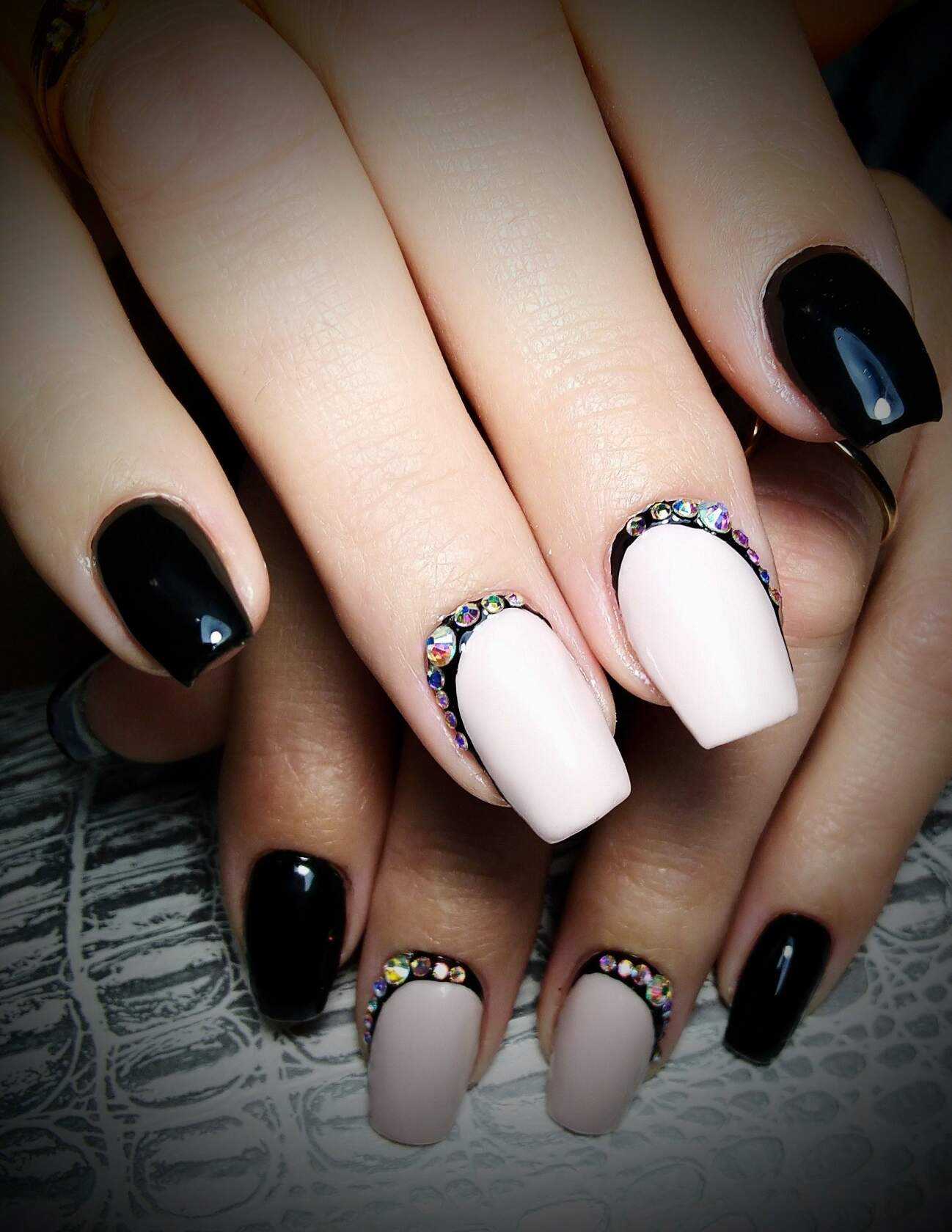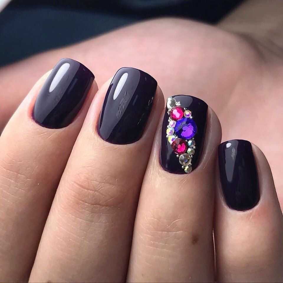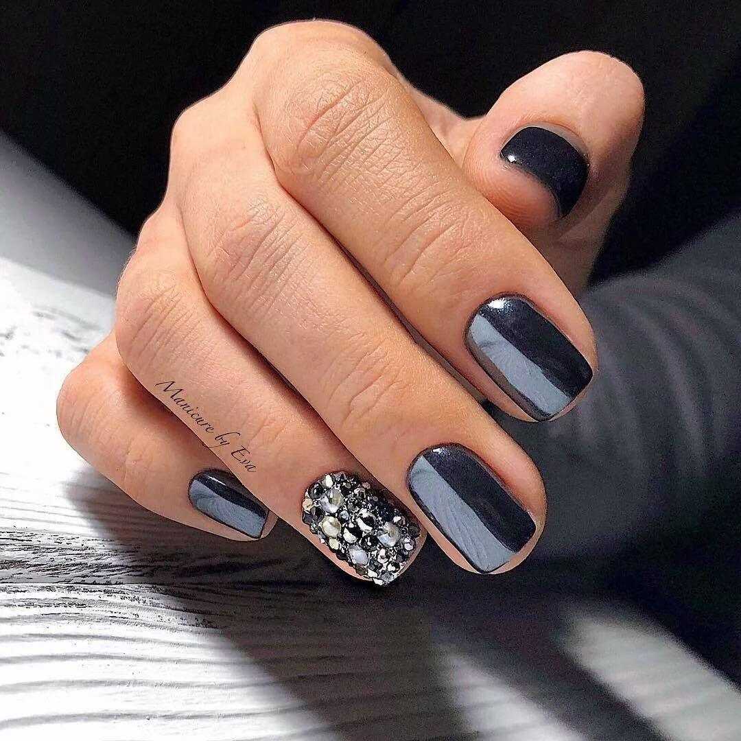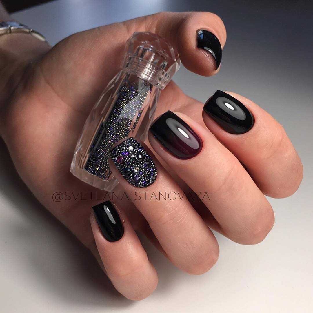 Как вы смогли убедиться, чёрные ноготки могут смотреться не только ярко и чересчур выразительно. Благодаря многочисленным техникам и современным вариациям оформления такой нейл-дизайн к лицу каждой даме, даже если вы очень нежная и скромная особа. Попробуйте поэкспериментировать с этим неординарным оттенком, и мы уверены, результат вас приятно удивит. Далее предлагаем вашему вниманию подборку потрясающих идей чёрного маникюра со стразами, которые помогут вам быстрее определиться с выбором и подобрать идеальный для себя вариант.