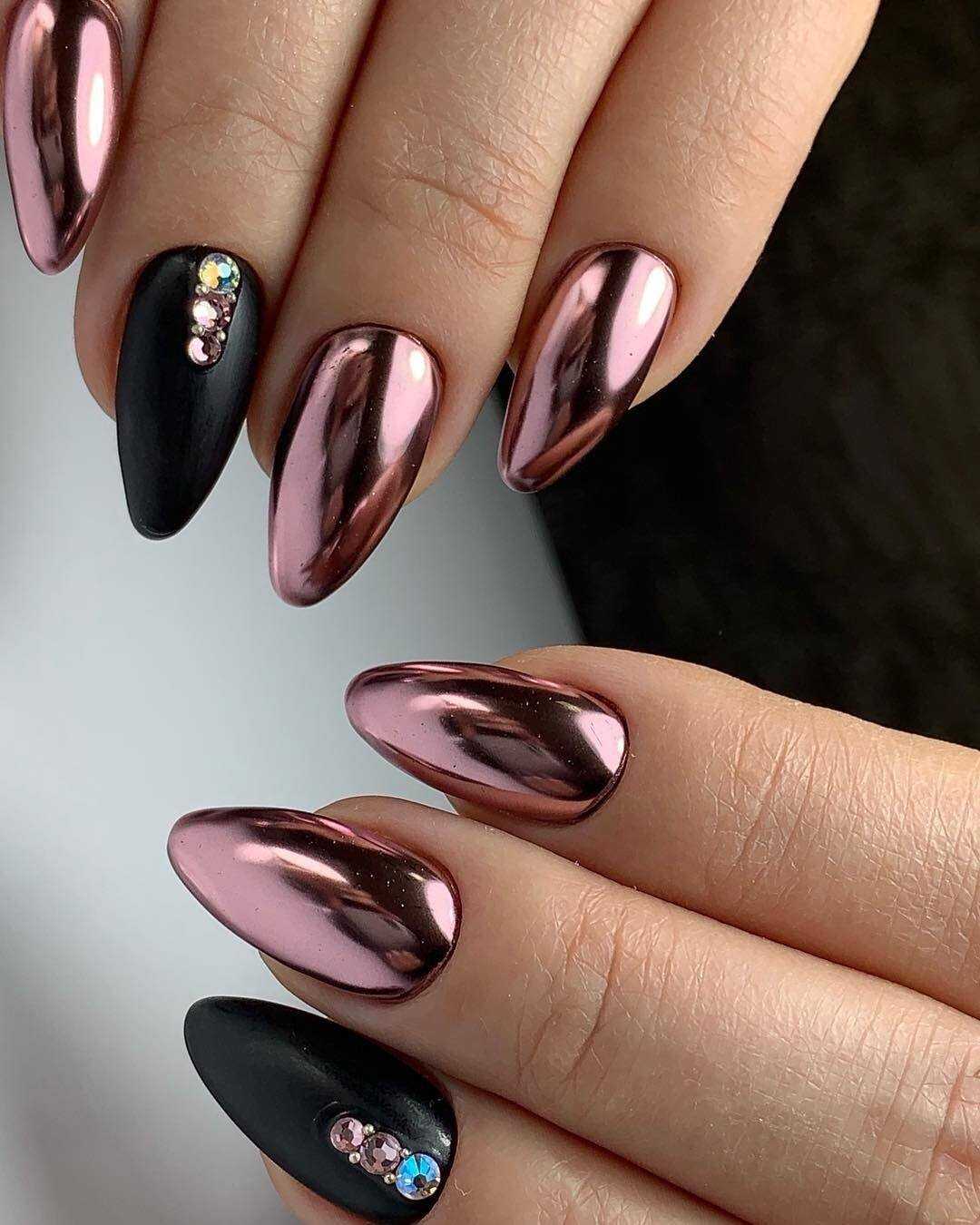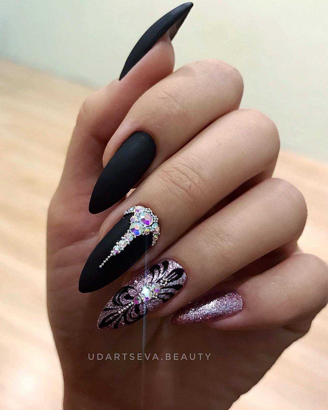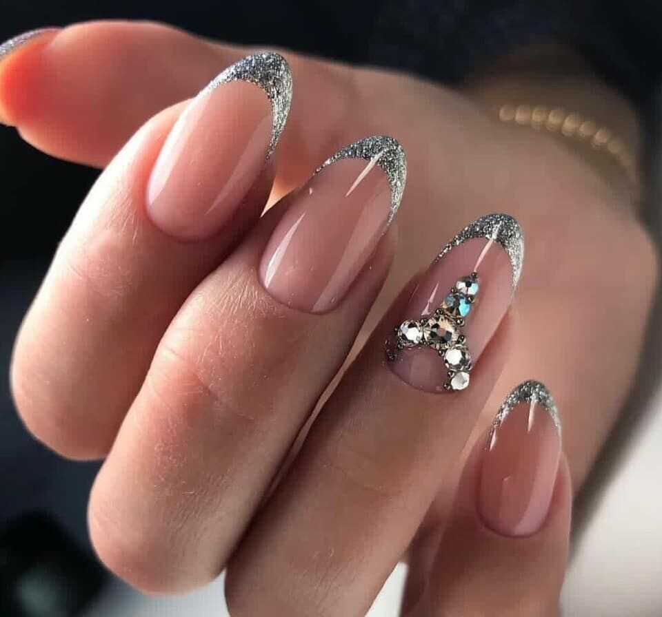 Востребованная форма ногтей для маникюр-2021 со стразами и блестками