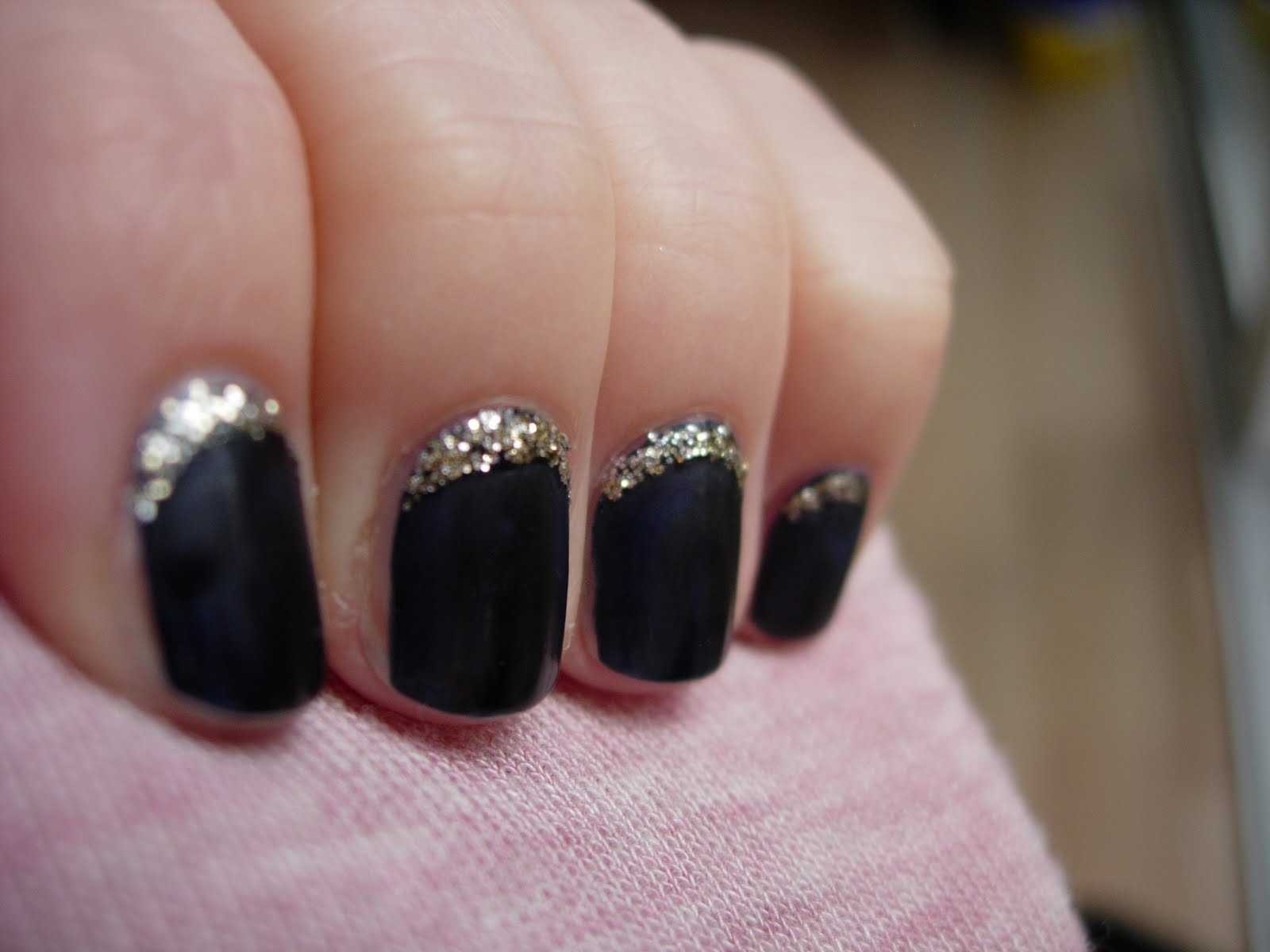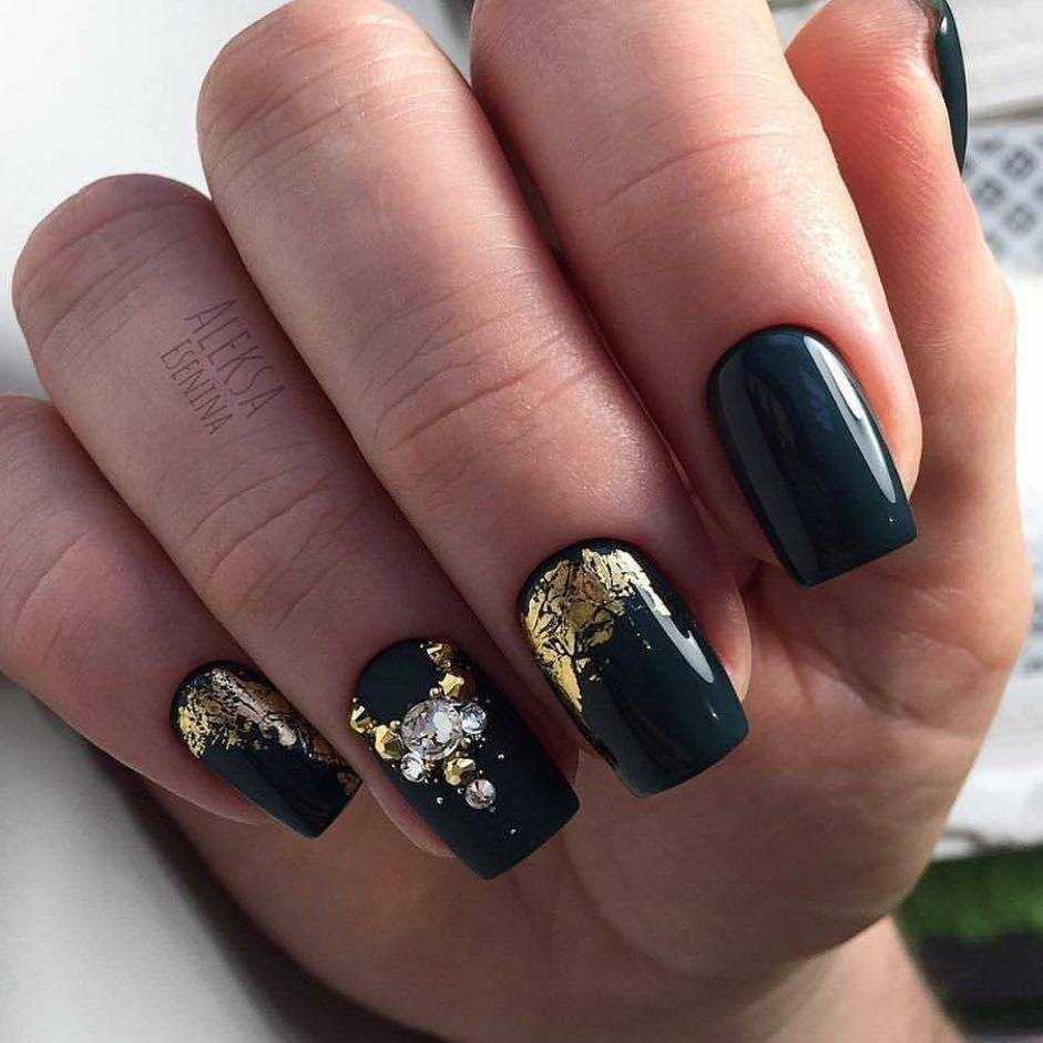 Эффектный дизайн черных ногтей с золотом