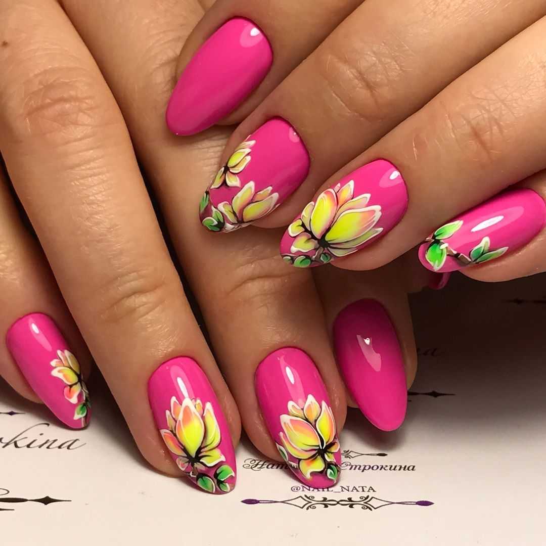 Короткая длина ногтей никогда не была помехой в создании стильного маникюра. Все чаще девушки украшают ноготки невероятно красивыми орнаментами, а также россыпью цветов. Несомненно, размер рисунка необходимо подбирать основываясь на длине ногтевой пластины. Поэтому не забывайте об этом нюансе. Также, выбирая рисунок, ориентируйтесь на образы, которые преобладают в вашем гардеробе. Если вы предпочитаете лаконичную классику, то цветы в стиле минимализм — лучшее, что можно придумать. Смелым, дерзким модницам больше подойдут крупные яркие цветы. Такой маникюр точно станет отражением вашего виденья прекрасного.