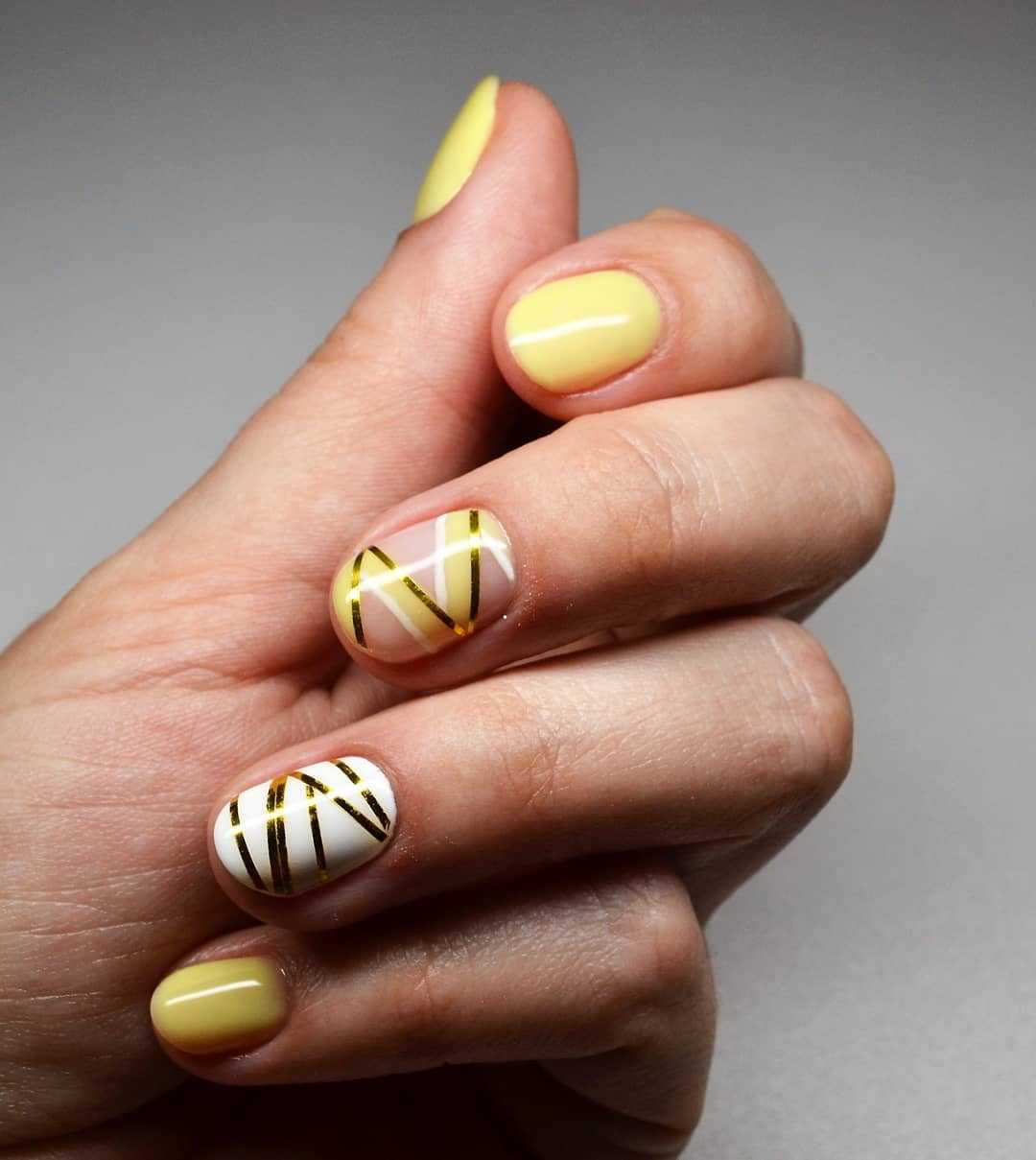 Скотч-ленту в качестве декора использовали довольно давно. Но только в 2020 году она стала настоящим хитом нейл-арта. Все потому, что она существует в самых разных оттенках и хорошо сочетается со многими видами покрытия. К тому же, работать с ней сплошное удовольствие даже для новичков. Главное — делать небольшое отступление от края ноготка, чтобы декор не цеплялся ни за что и не отставал. Для лучшей фиксации всегда наносите поверх декора топовое покрытие.