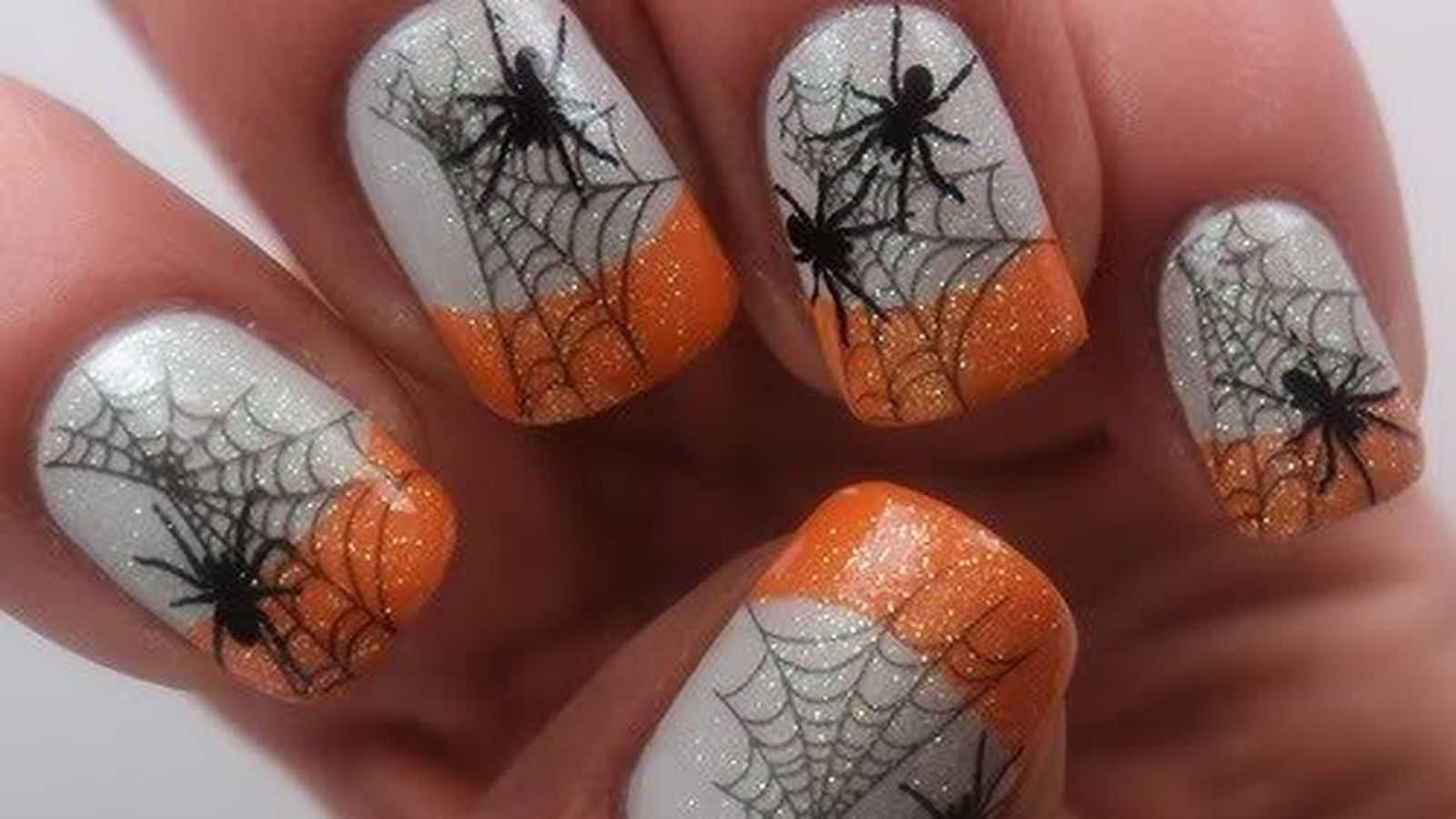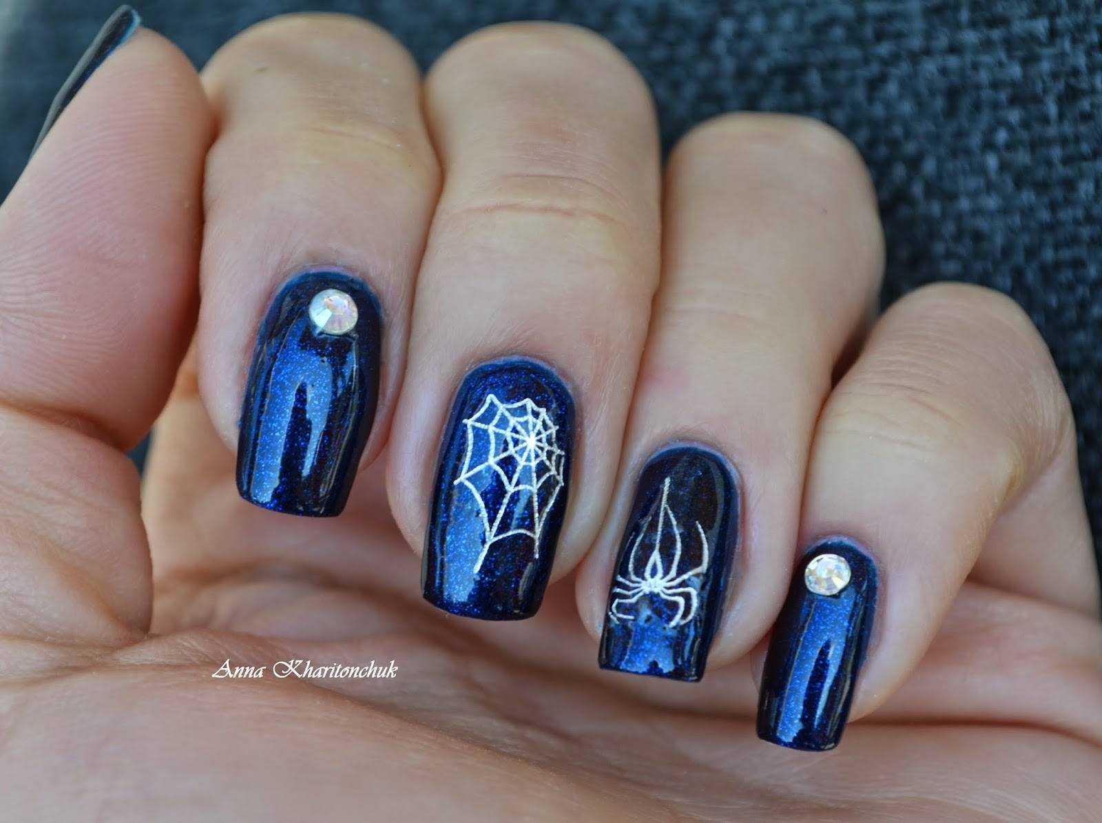 Маникюр с паутинкой и пауками
