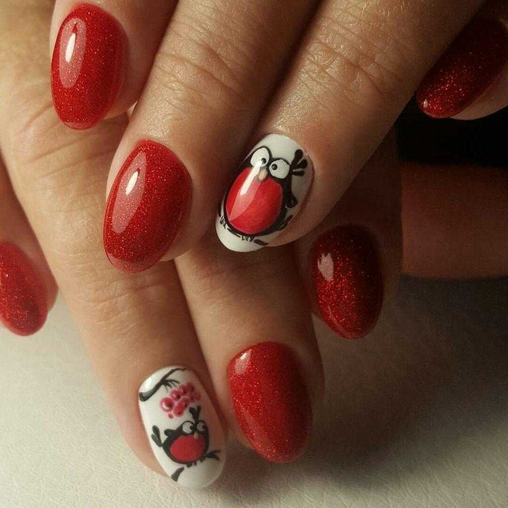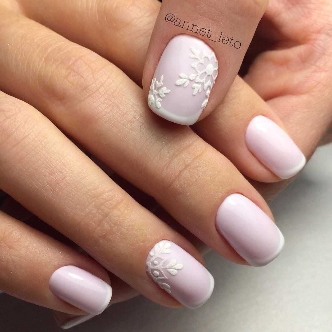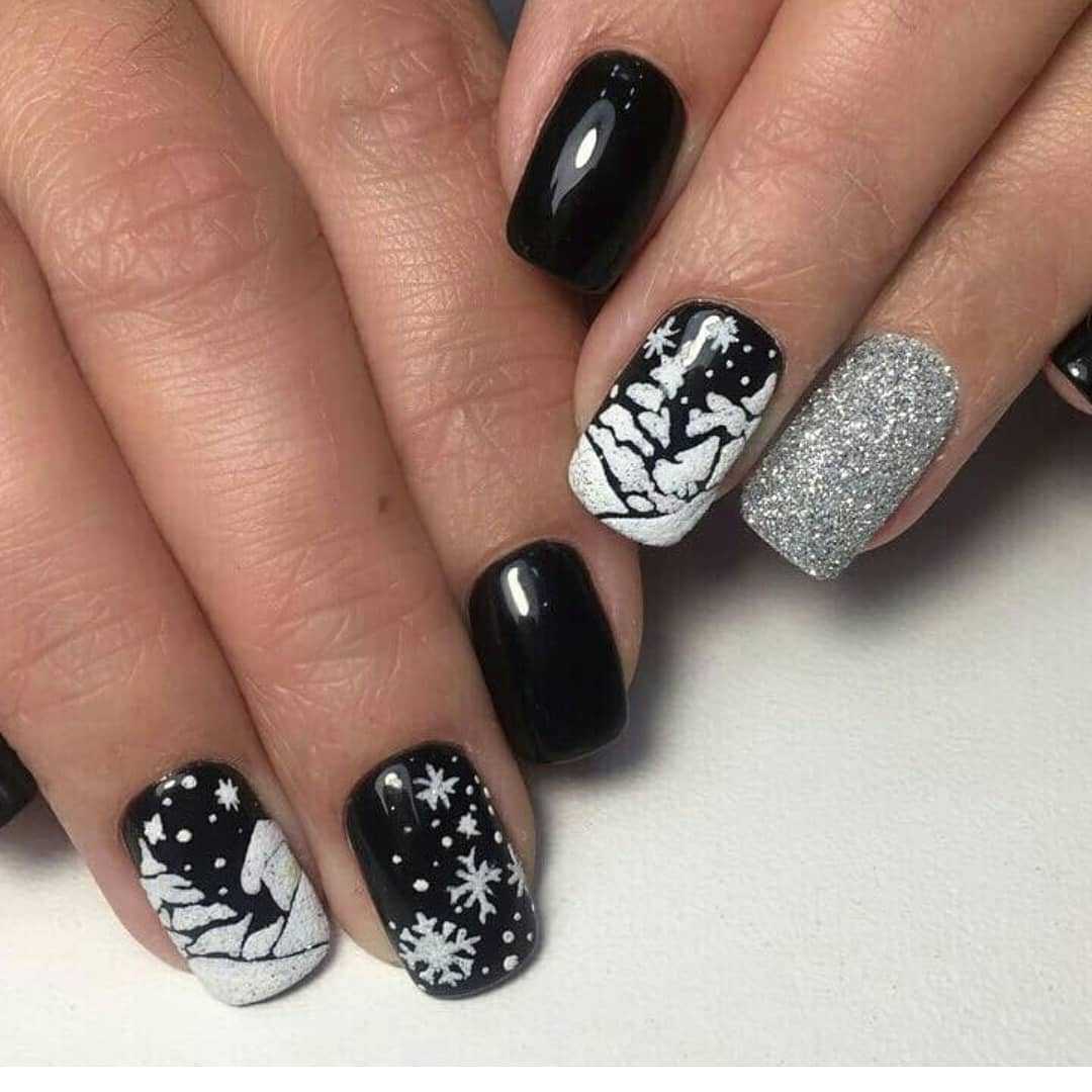 - белый – универсальный цвет, который особенно уютно выглядит зимой. В тренде как однотонное покрытие ногтей, так и декор акриловой пудрой, глиттером, фольгой.