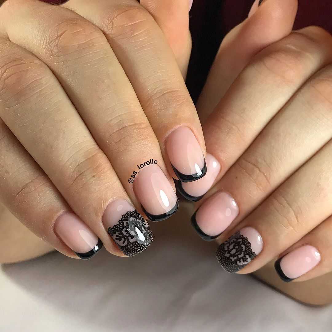 - черно-белый маникюр – наибольшей популярностью пользуется роспись в клетку, в стиле шахматной доски, кружевные узоры и геометрия во всех своих проявлениях;