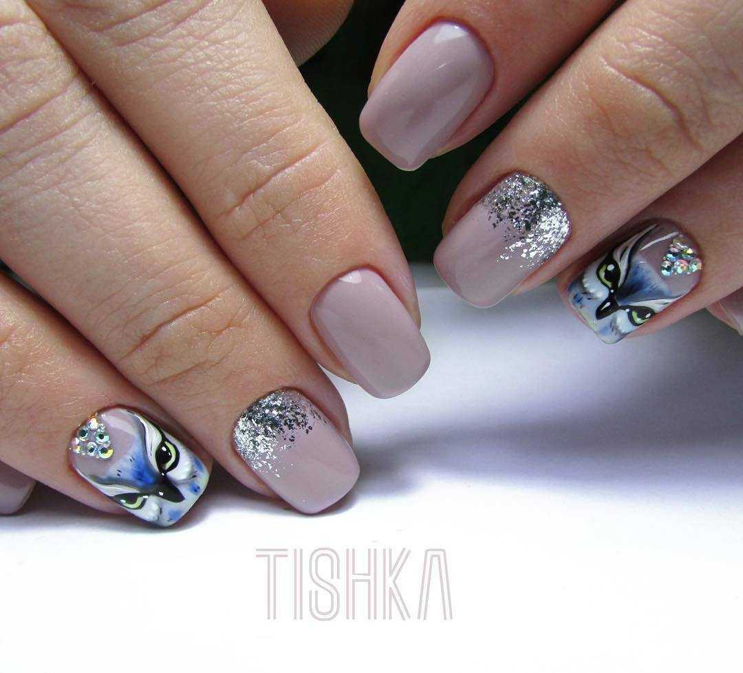 Мастера маникюра советуют выполнять дизайн для коротких ноготков в контрастных цветах. В таком выполнении шикарно смотрится вариант с флористикой, геометрией и животным принтом