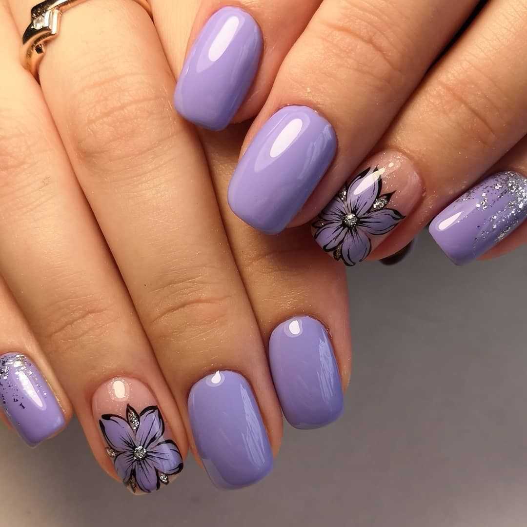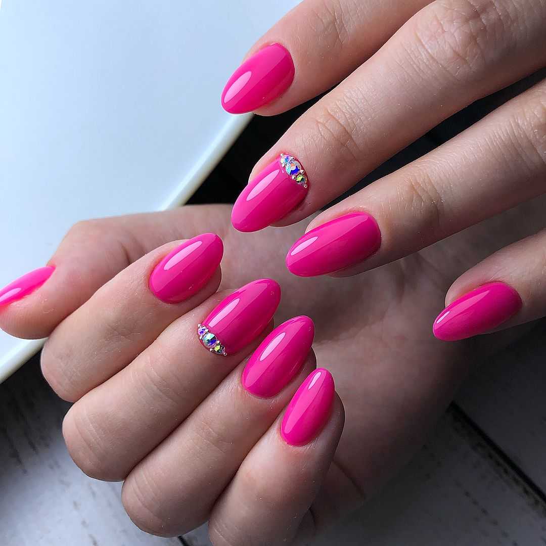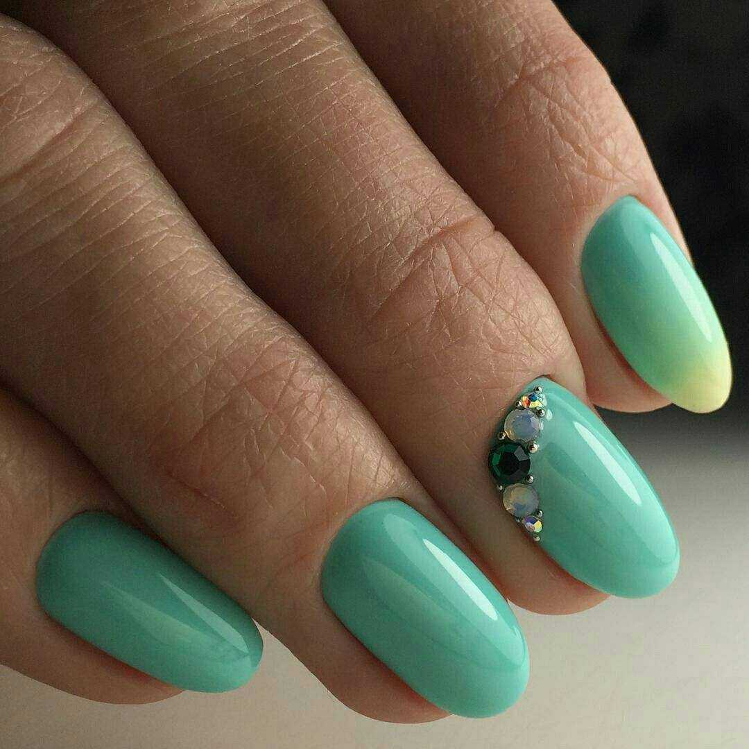 Для создания однотонного нейла используются любые оттенки, а само покрытие может быть матовым или глянцевым. Блёстки в этом случае очень красиво смотрятся на акцентном ноготке или могут входить в состав лака.