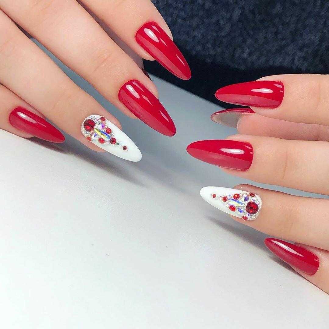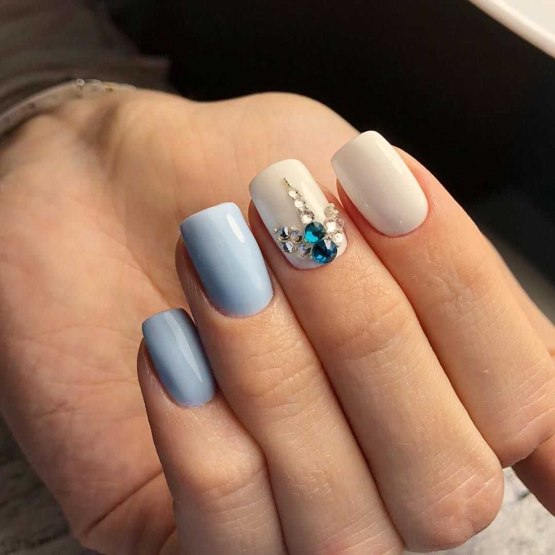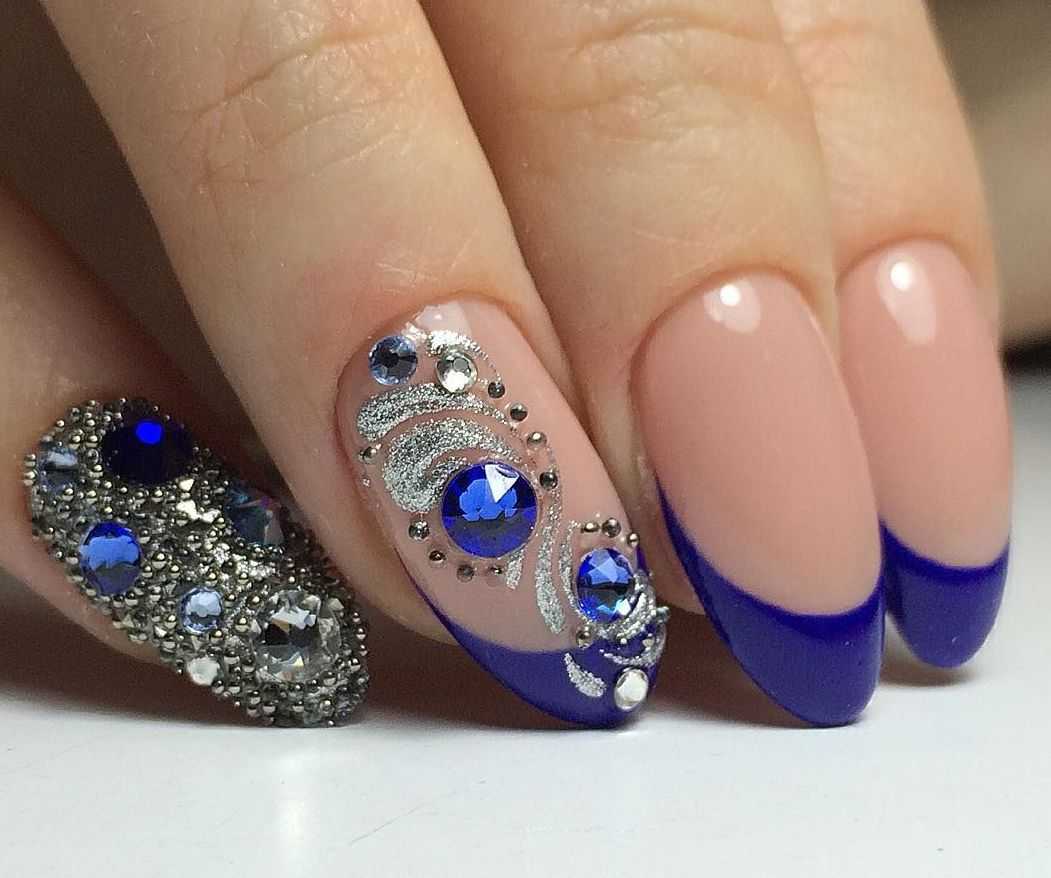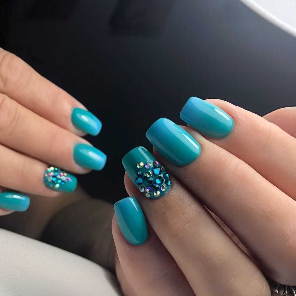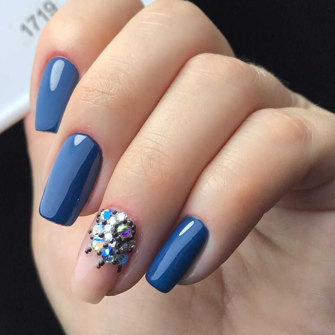 Все чаще яркий маникюр дополнительно покрывают специальным матовым лаком или топом. Благодаря чему оформление получается более сдержанным и в то же время элегантным. В то же время, стразы компенсируют утраченную яркость и преподносят маникюр совершенно по-другому. Ведь их блеск становится гораздо более заметным и эффектным. Это современное решение выбирают модницы для вечерних или праздничных образов. Особенно это касается покрытия в красном, изумрудном, синем и фиолетовом цвете.