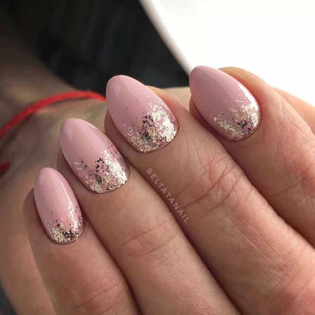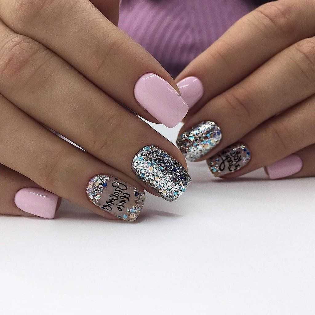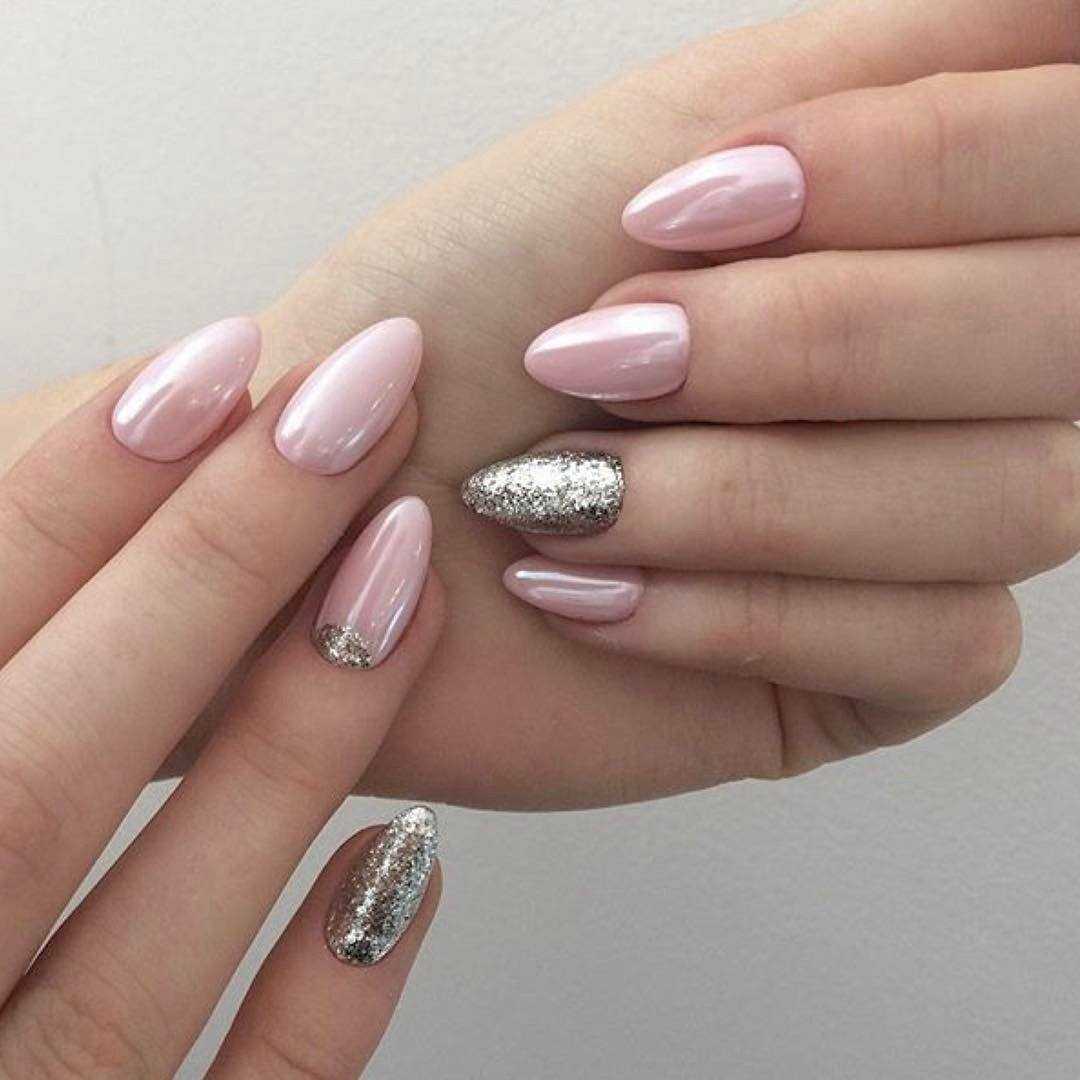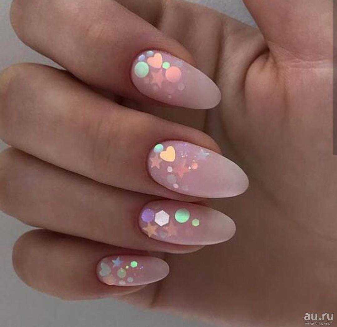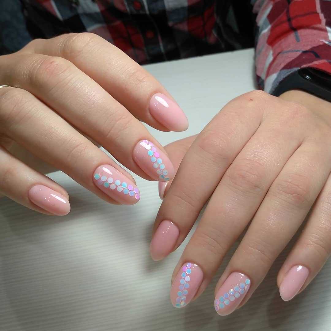 #5 Нежный розовый маникюр с блестками и пайетками
