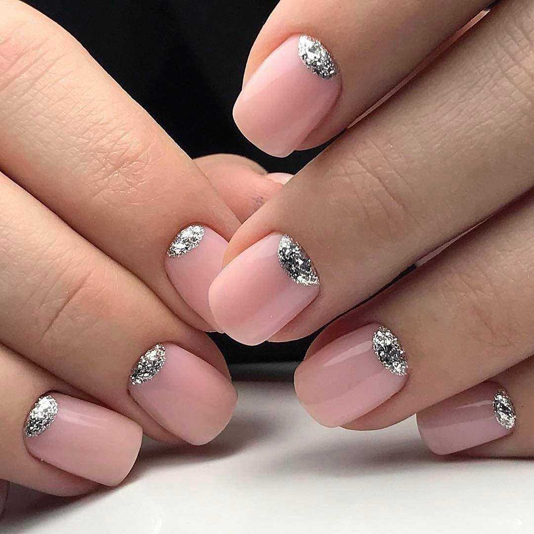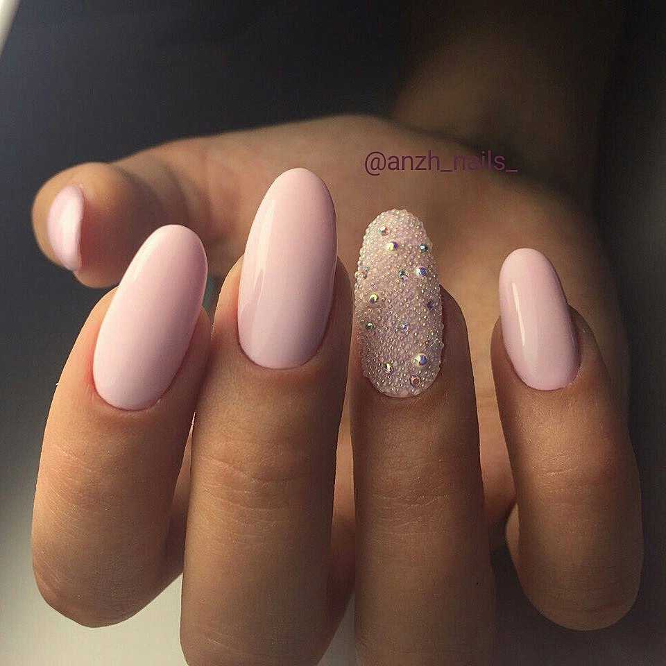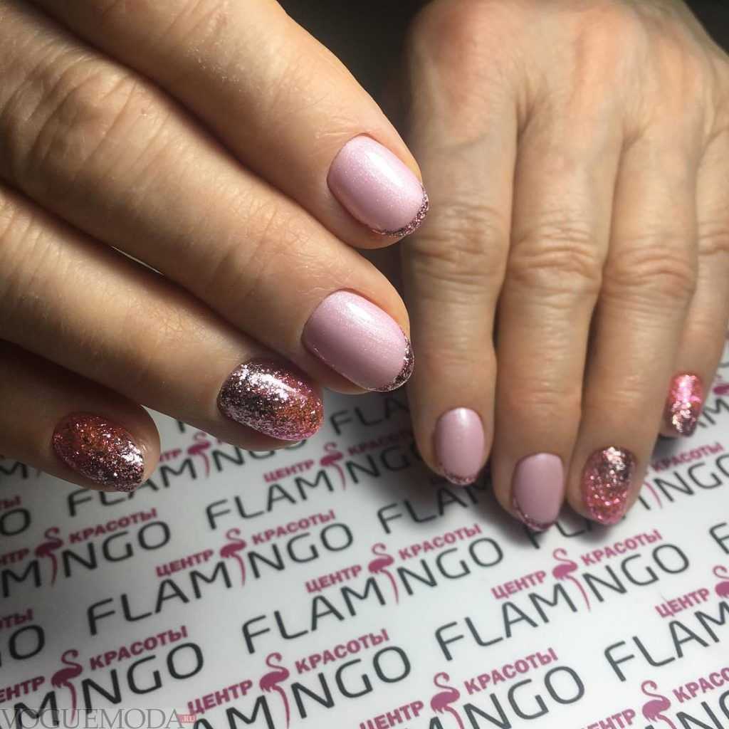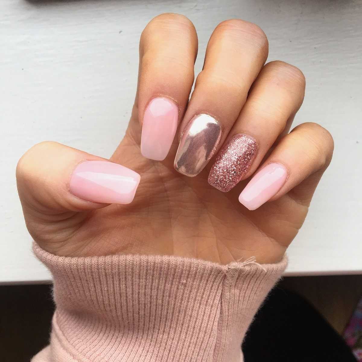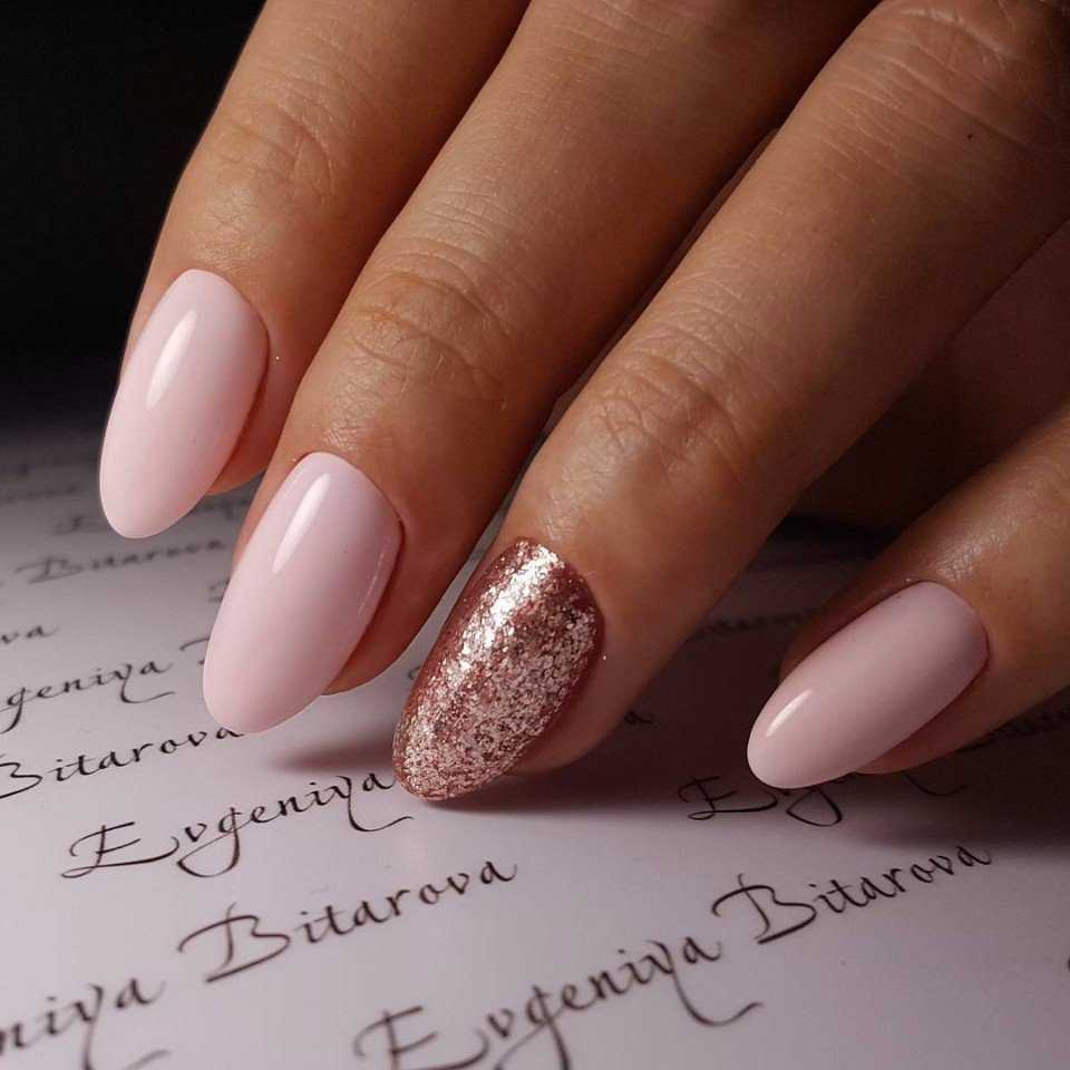 #5 Нежный розовый маникюр с блестками и пайетками