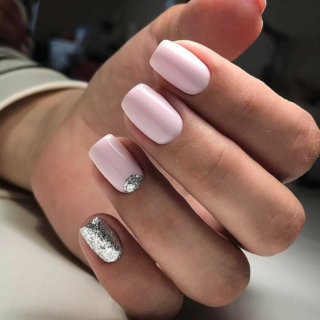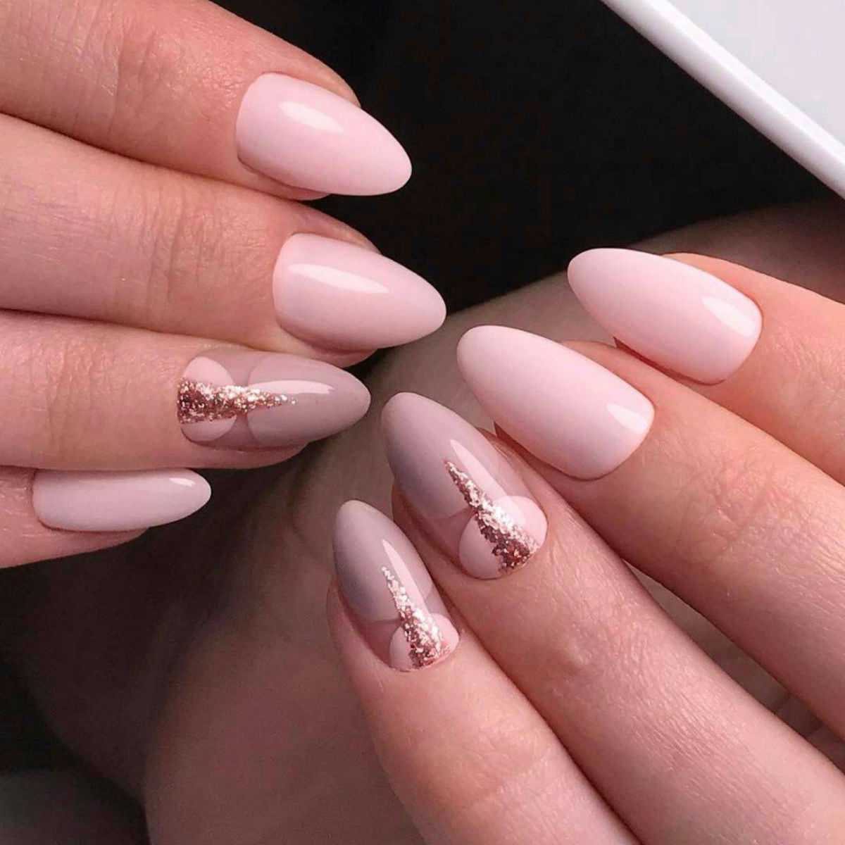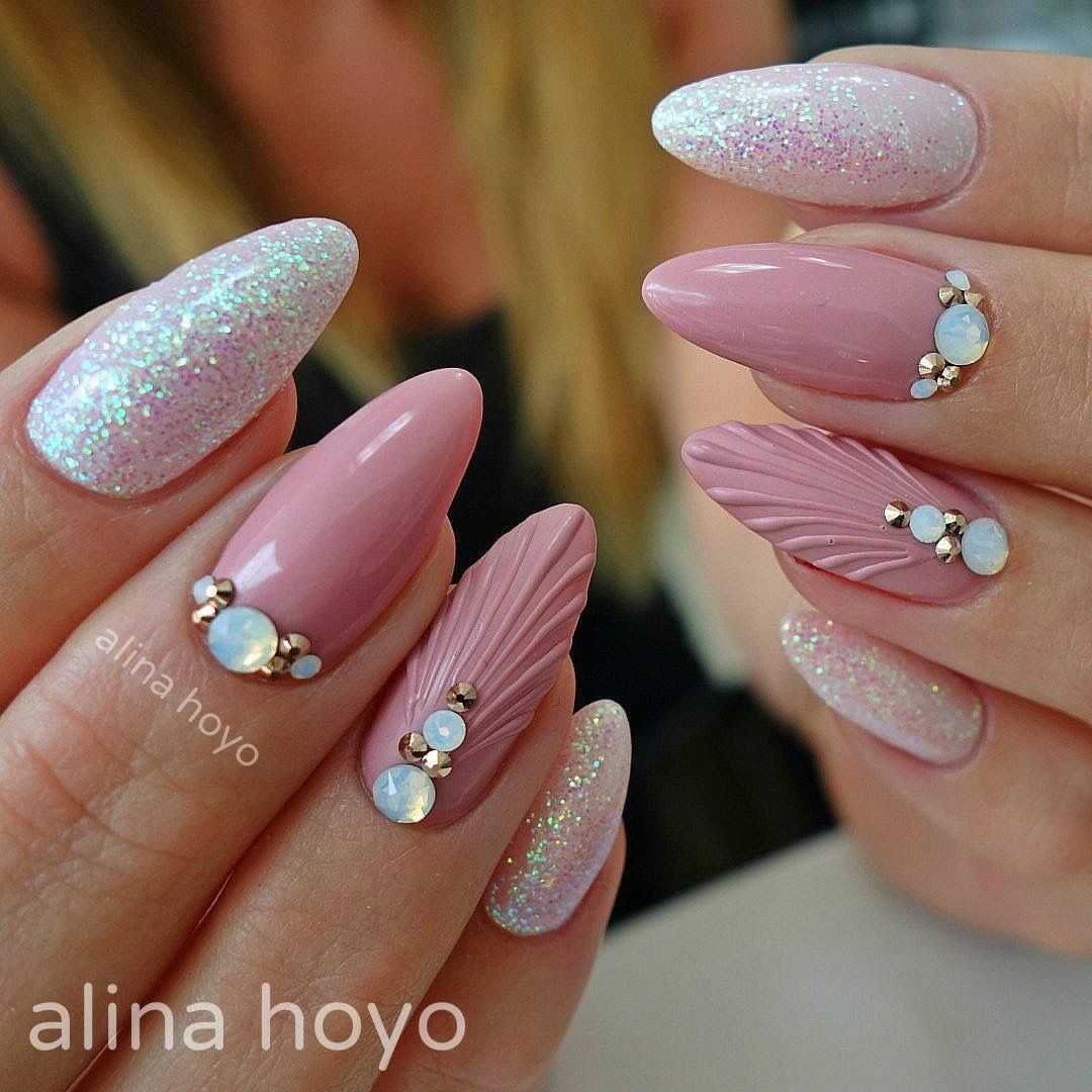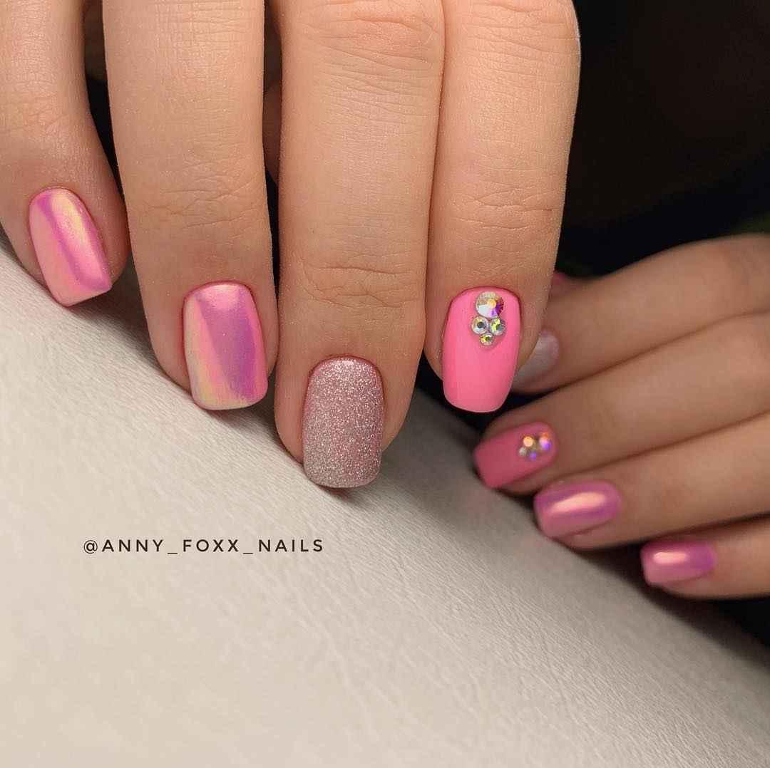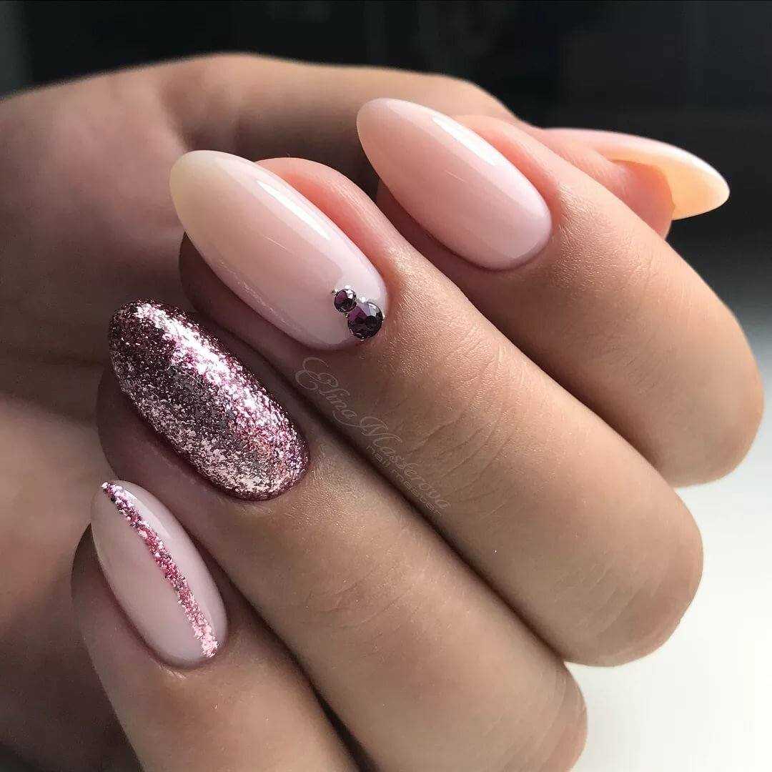 #5 Нежный розовый маникюр с блестками и пайетками