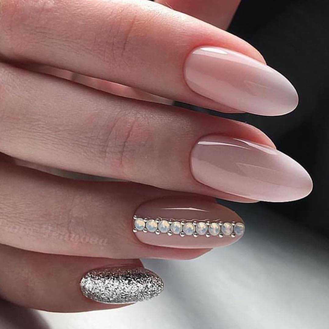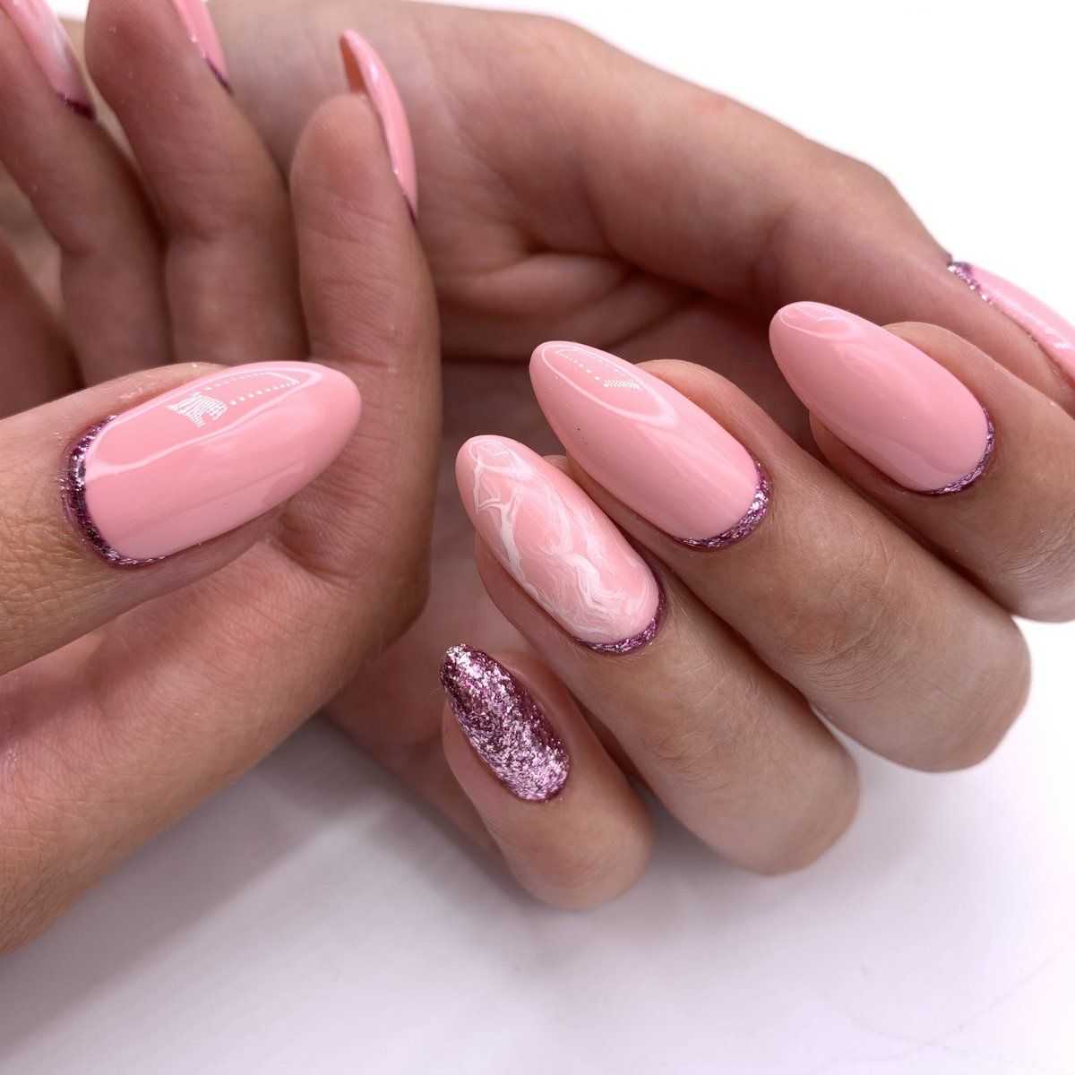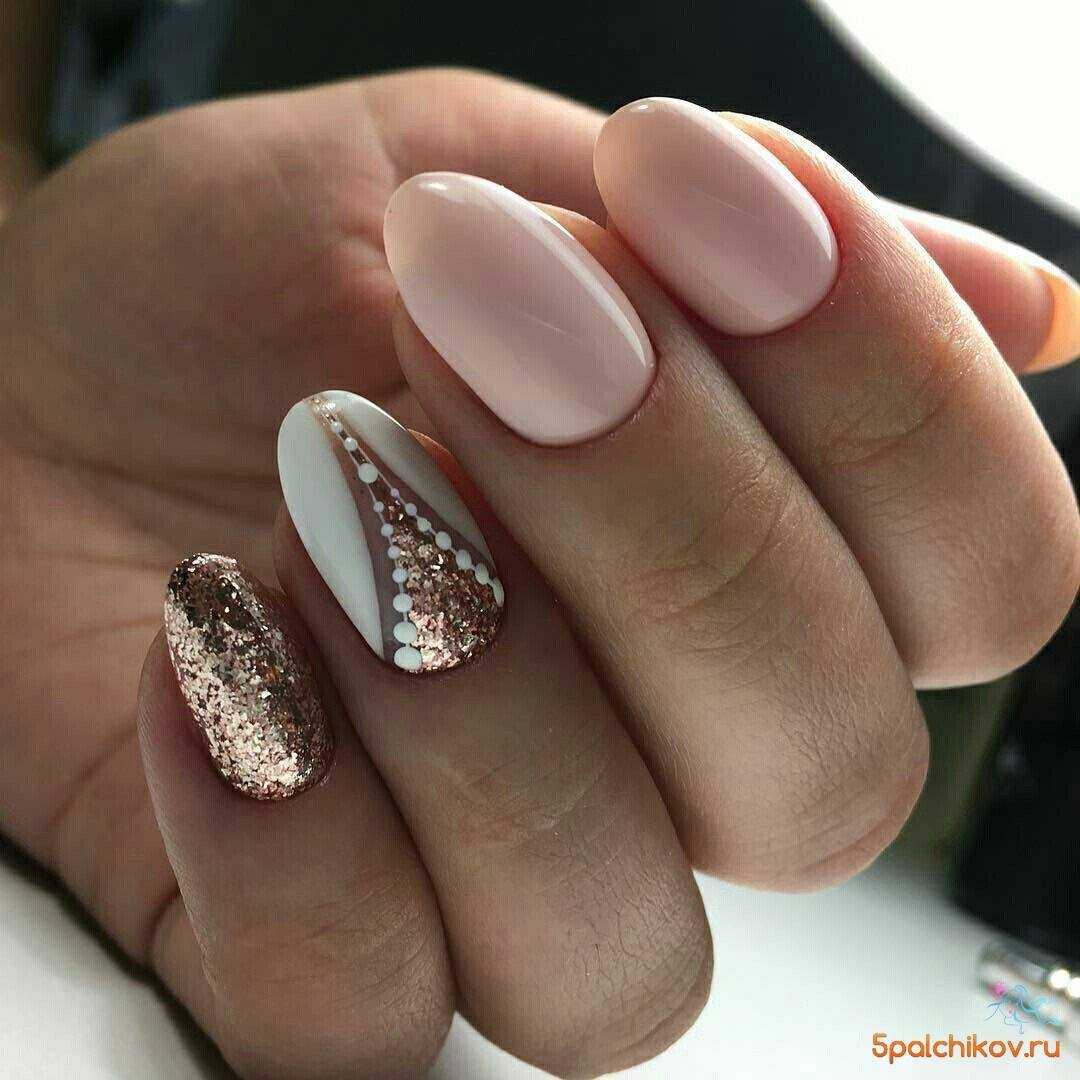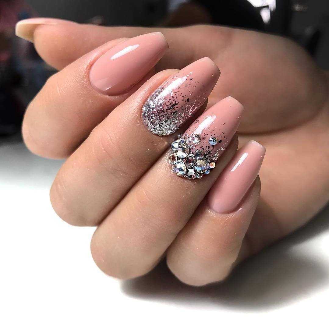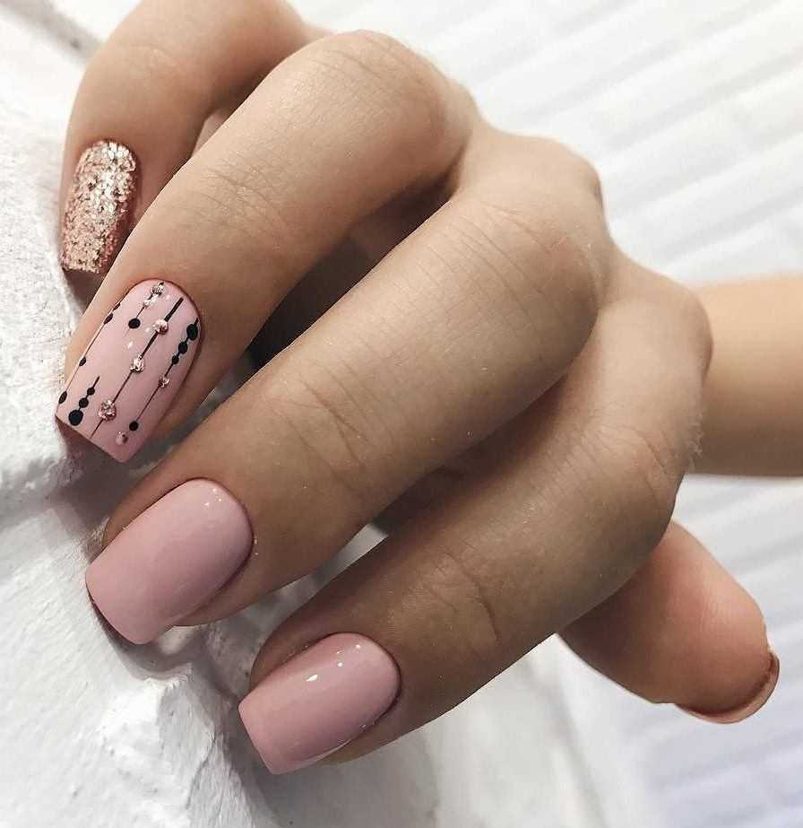 #5 Нежный розовый маникюр с блестками и пайетками