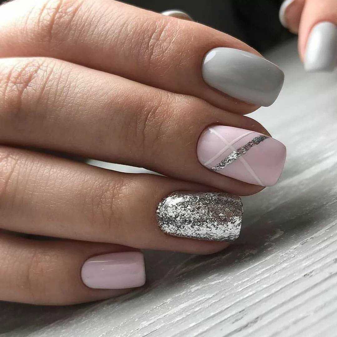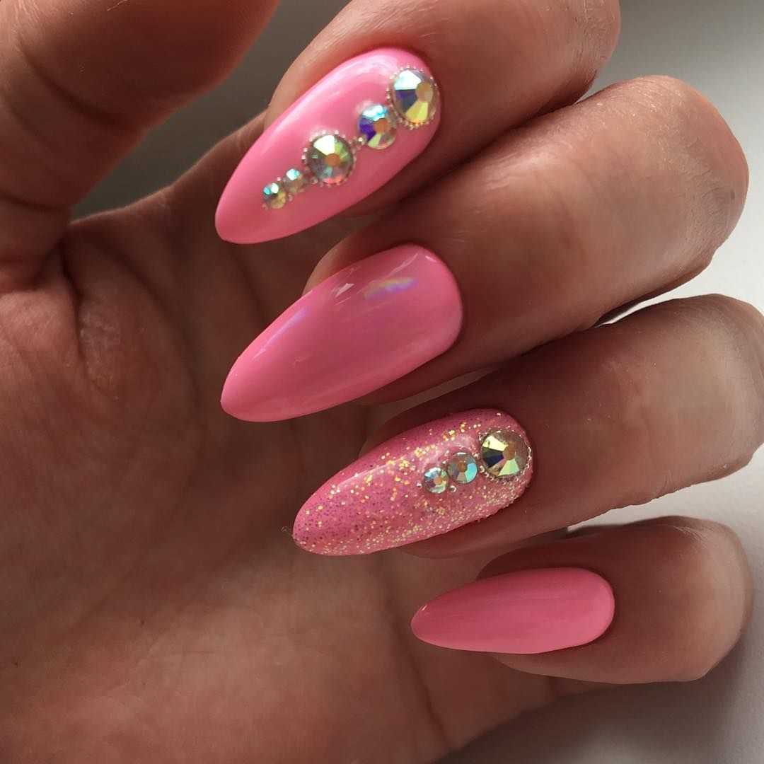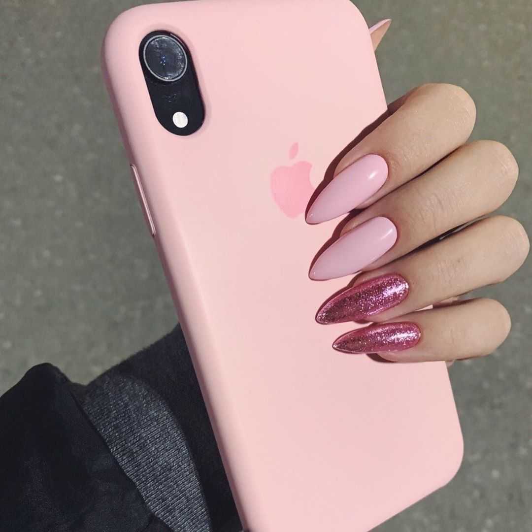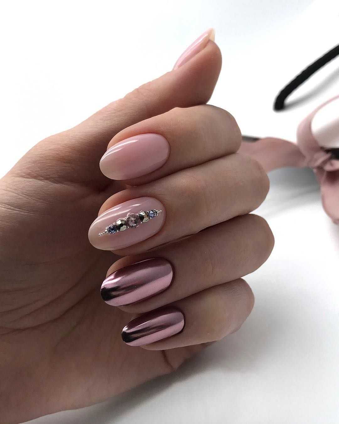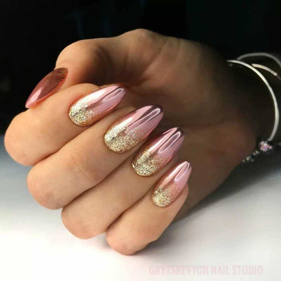 #5 Нежный розовый маникюр с блестками и пайетками