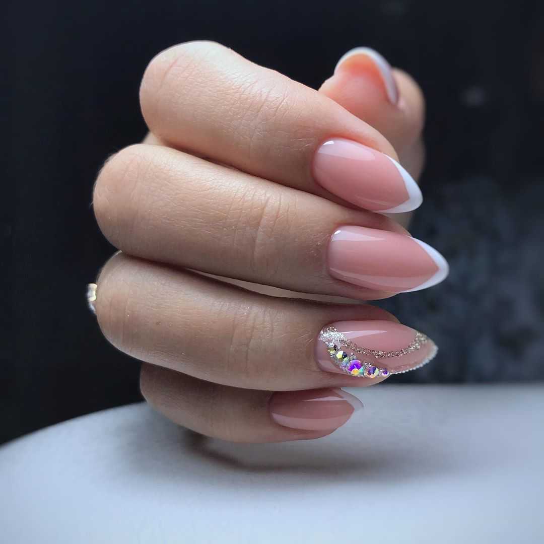 Маникюр с прозрачными лунками и стразами