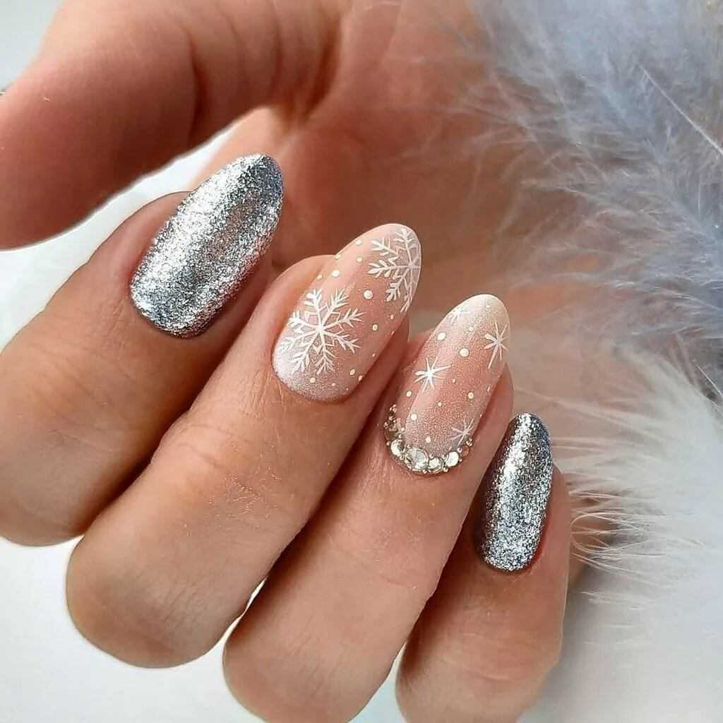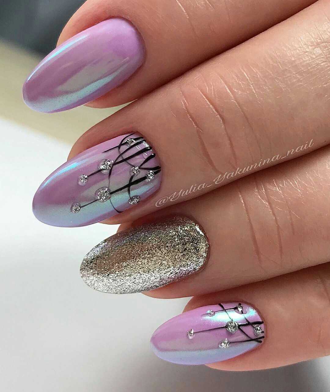 Пайетки – большие блестки разного размера и формы. Классический пример – круглые блестки. Они могут быть серебряными, золотыми, цветными и т.д. Стильно смотрится дизайн с пайетками в форме звездочек, сердечек, других геометрических форм.