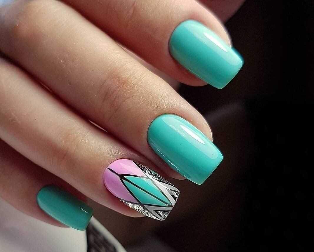 Модный маникюр с использованием геометрии станет отличным дополнением повседневного или праздничного дизайна ногтей. В этом дизайне важен выбранный фон. Поэтому сначала необходимо правильно выбрать оттенок краски для основы. Но дополнительные цвета должны быть контрастными, чтобы в результате получился красивый геометрический узор. Золотые блестки можно использовать для выделения контура рисунка, придавая маникюру яркости и оригинальности.