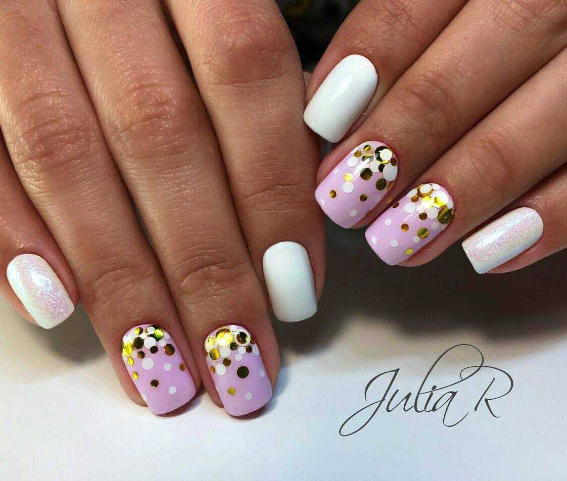 Самой главной тенденцией этого года считается принт горох. И это касается не только маникюра, но и трендовых нарядов. Во время выполнения данного дизайна не возникнет никаких сложностей. При использовании дотса или конфетти мастера маникюра создают сногсшибательные шедевры дизайна для летнего времени года. Очень привлекательно и необычно выглядит дизайн с выполненным горошком в разных цветовых решениях. Такой маникюр поднимет настроение своей обладательнице и подарит заряд бодрости и энергии. При этом вовсе не обязательно выполнять весь декор одного размера. Чтоб придать игривости, можно комбинировать горошек разных размеров.