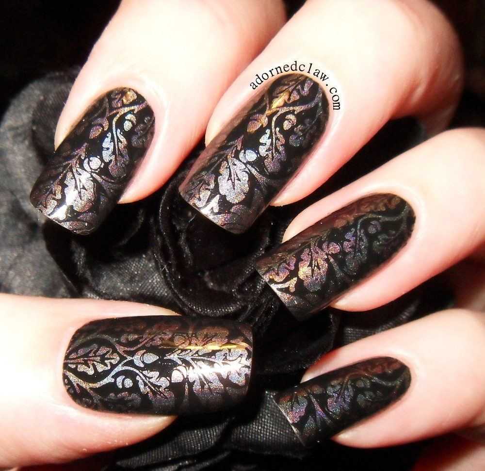 Черный лак несколько ограничивает сферу своего применения. Несмотря на его актуальность в 2018 году, такой лак не любят в деловом маникюре. Тем не менее, он прекрасно подходит для создания узоров на ногтях. В таком варианте этот цвет принимается в любых учреждениях и для любых случаев. Весной процент черного цвета на ногтях стоит снизить или максимально разбавлять его свежими весенними красками.