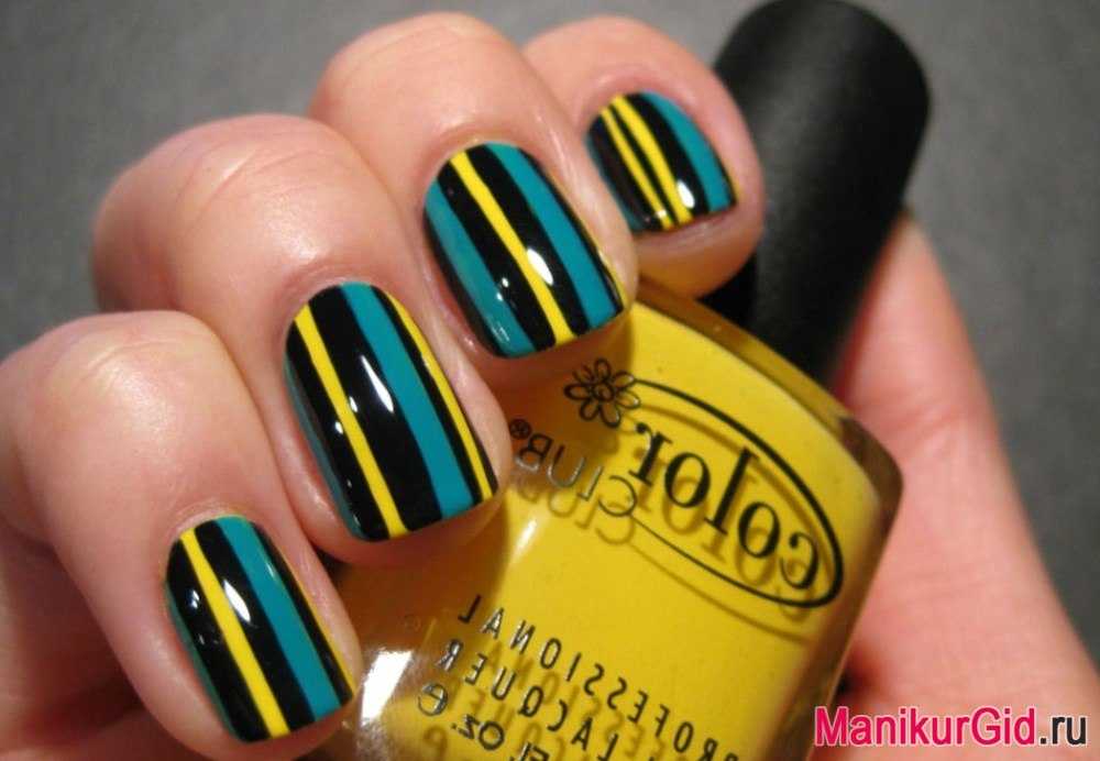 Тем ни менее, их эффектность привлекает внимание многочисленных поклонниц актуального маникюра. Возможности создания модных рисунков с помощью полос неограничен. Опытный мастер может визуально изменить геометрию ногтя с помощью одних лишь только линий