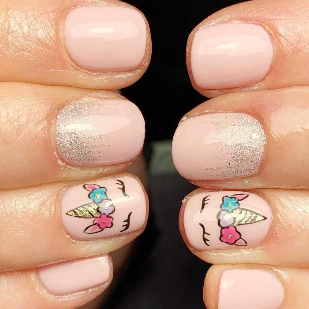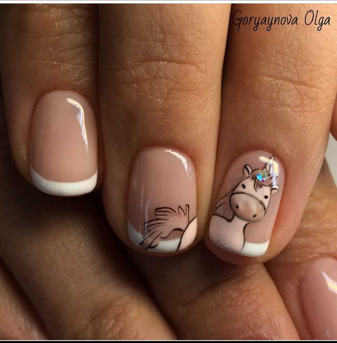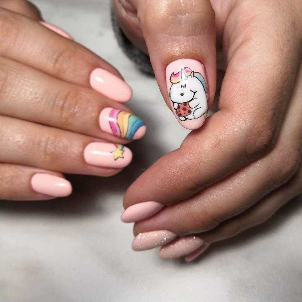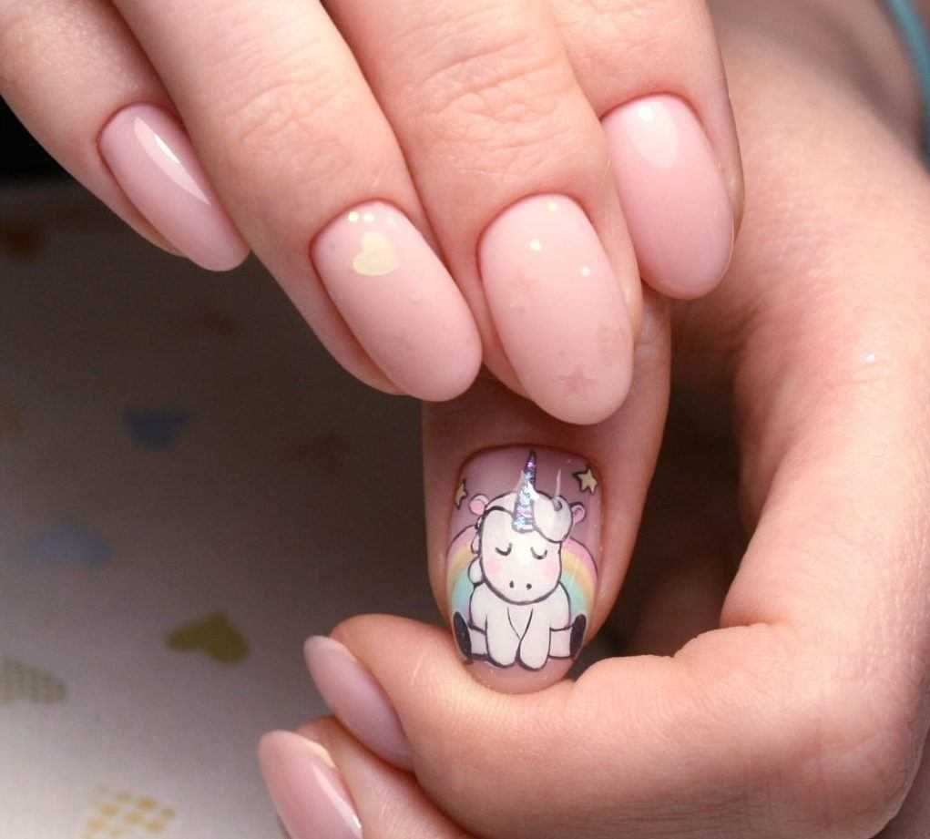 Прекрасный нейл-арт с единорогом на коротких ноготках