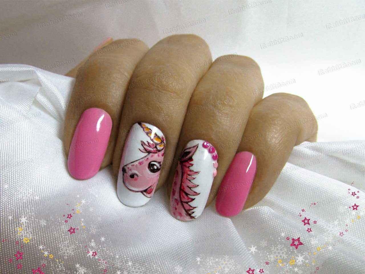 Рисунок единорога сам по себе достаточно крупный, поэтому выполнить его на ноготках короткой длины бывает очень тяжело. Но все же решение для этой проблемы существует: