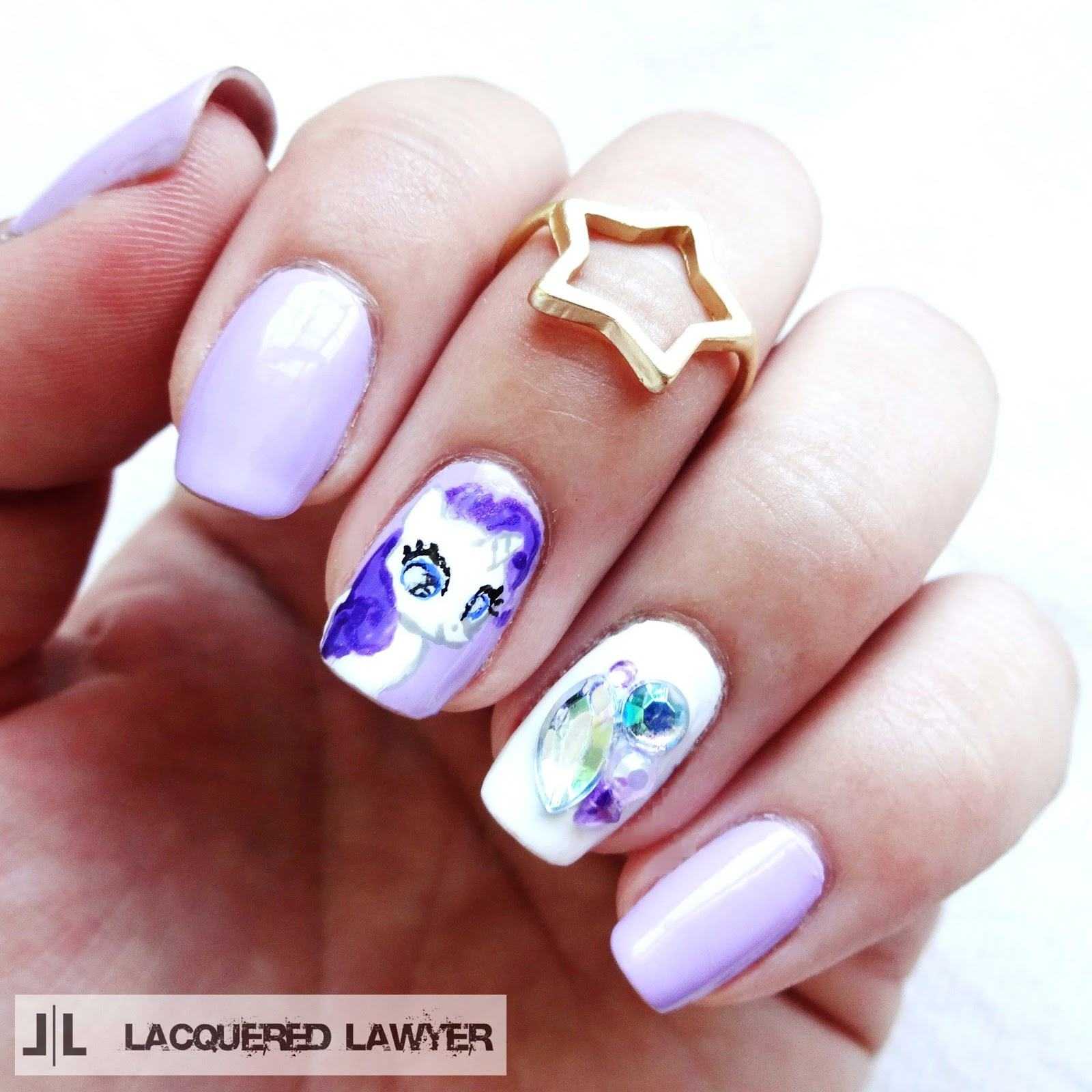 Если вы только начинаете свое знакомство с единорогами, то можете ограничиться маникюром с рогом. Изобразить его на ногтях гораздо проще, чем всего единорога, а выглядит он не менее привлекательно.