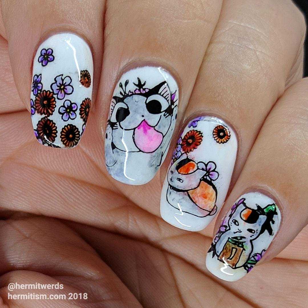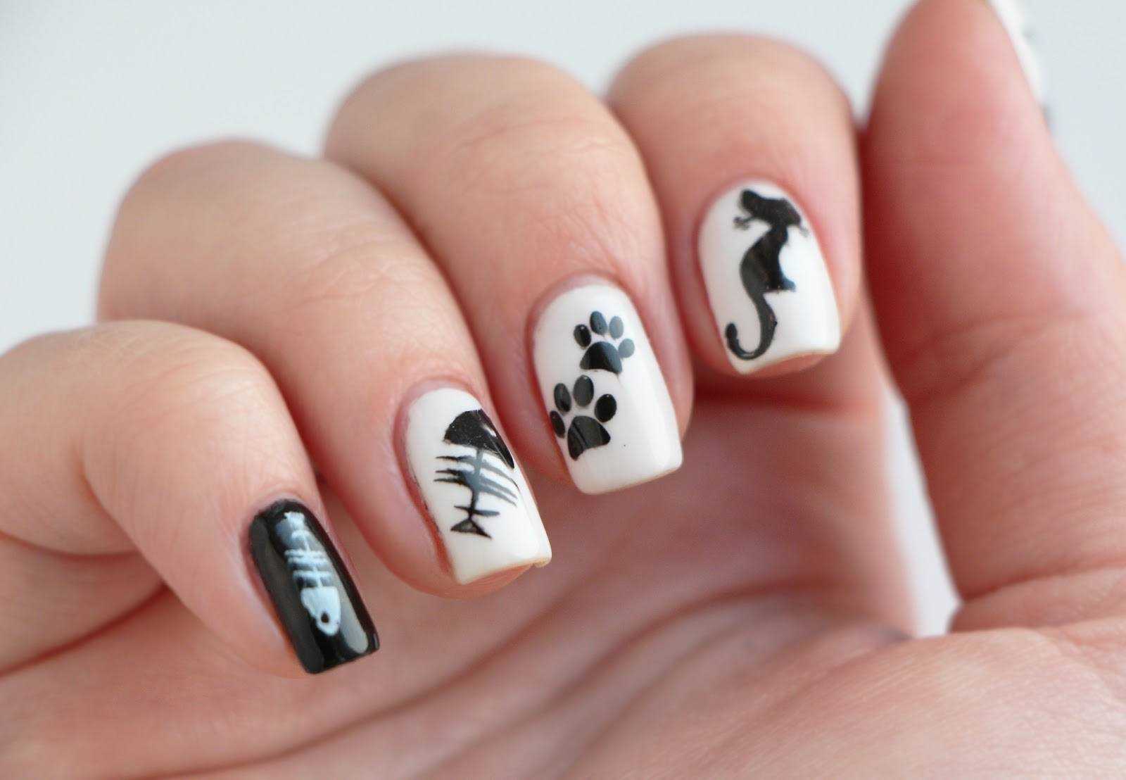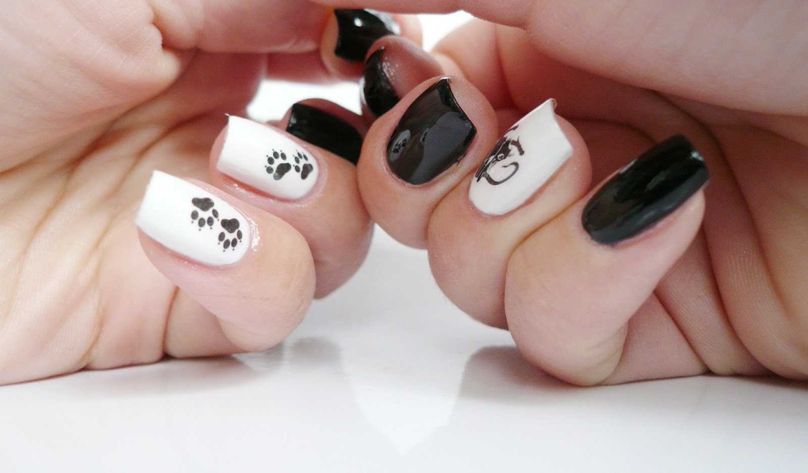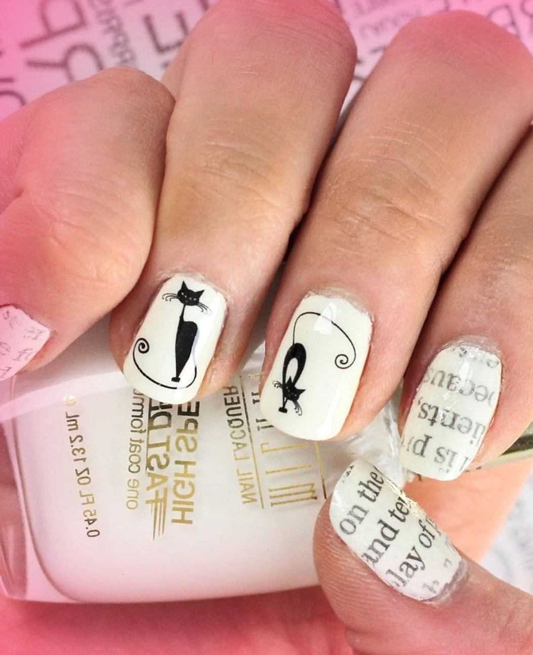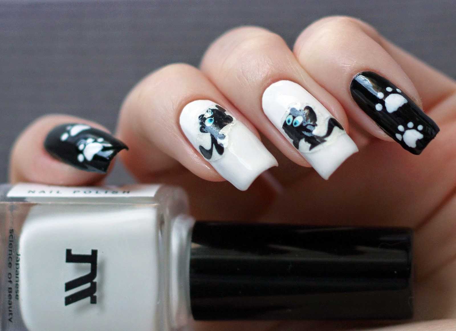 маникюр с кошками в горошек чёрно-белый маникюр с кошками
