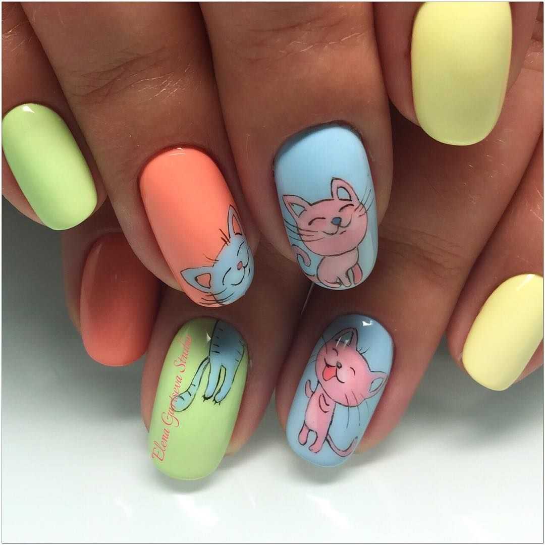Для цветного маникюра с кошками можно использовать обычные лаки. Пестрый нейл-арт подойдет страстным и ярким натурам. Рисовать можно не только кошек, но и различные элементы, которые ассоциируются с ними: рыбки, мышки и т.д. Стильный маникюр прекрасно подойдет для пляжной или коктейльной вечеринки. Котята на ногтях не останутся незамеченными. Предлагаем вашему вниманию коллекцию фото, из которой вы, возможно, почерпнете интересные идеи для собственного маникюра.