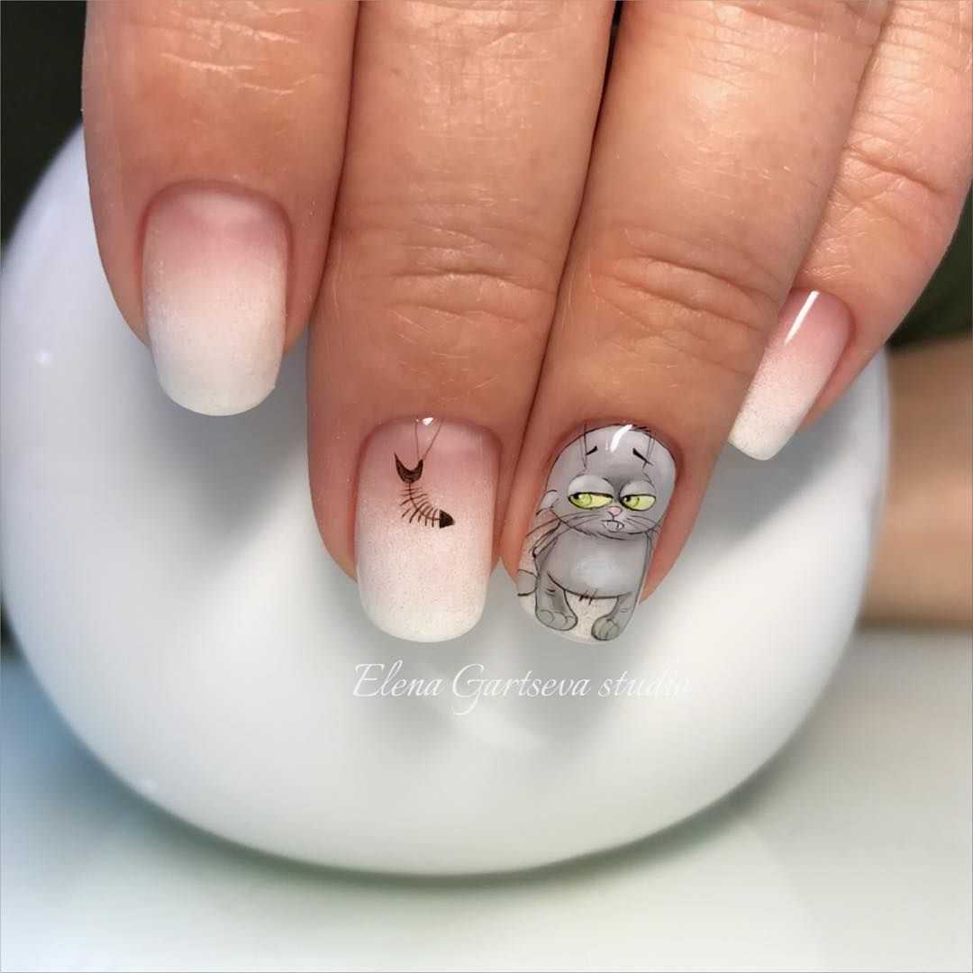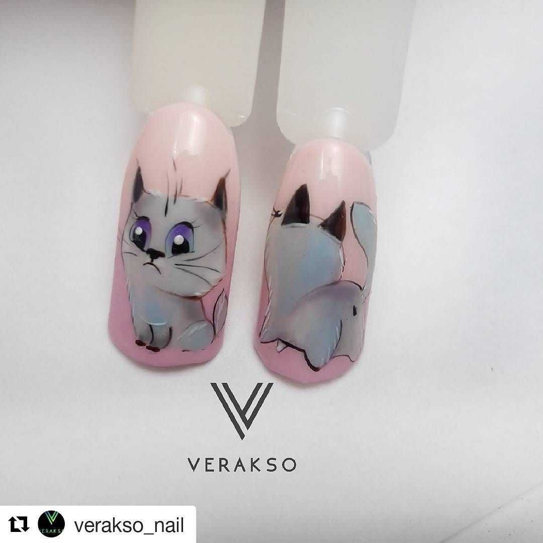 Маникюр с кошками.Дизайн ногтей с изображением кошек. 50 фото.