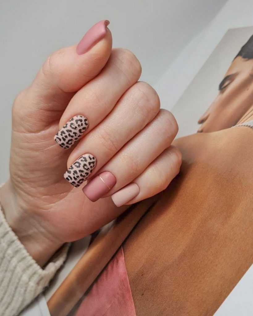 Оригинально смотрится леопардовый принт на коротких ногтях, правильное покрытие способно подчеркнуть их естественную красоту и естественность. Основное правило здесь — шаблон для коротких ногтей должен быть как можно меньше.