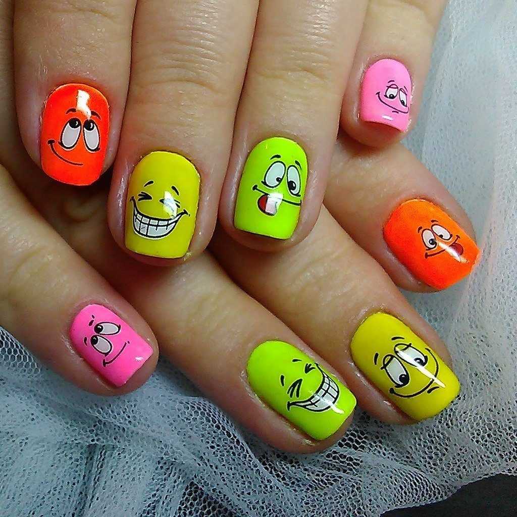 #1 Веселый маникюр со смайлами: улыбчивый узор на ноготках