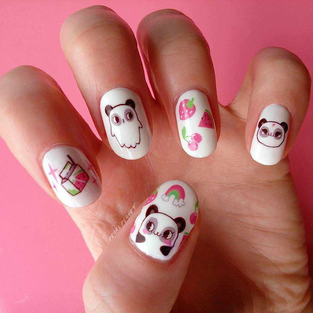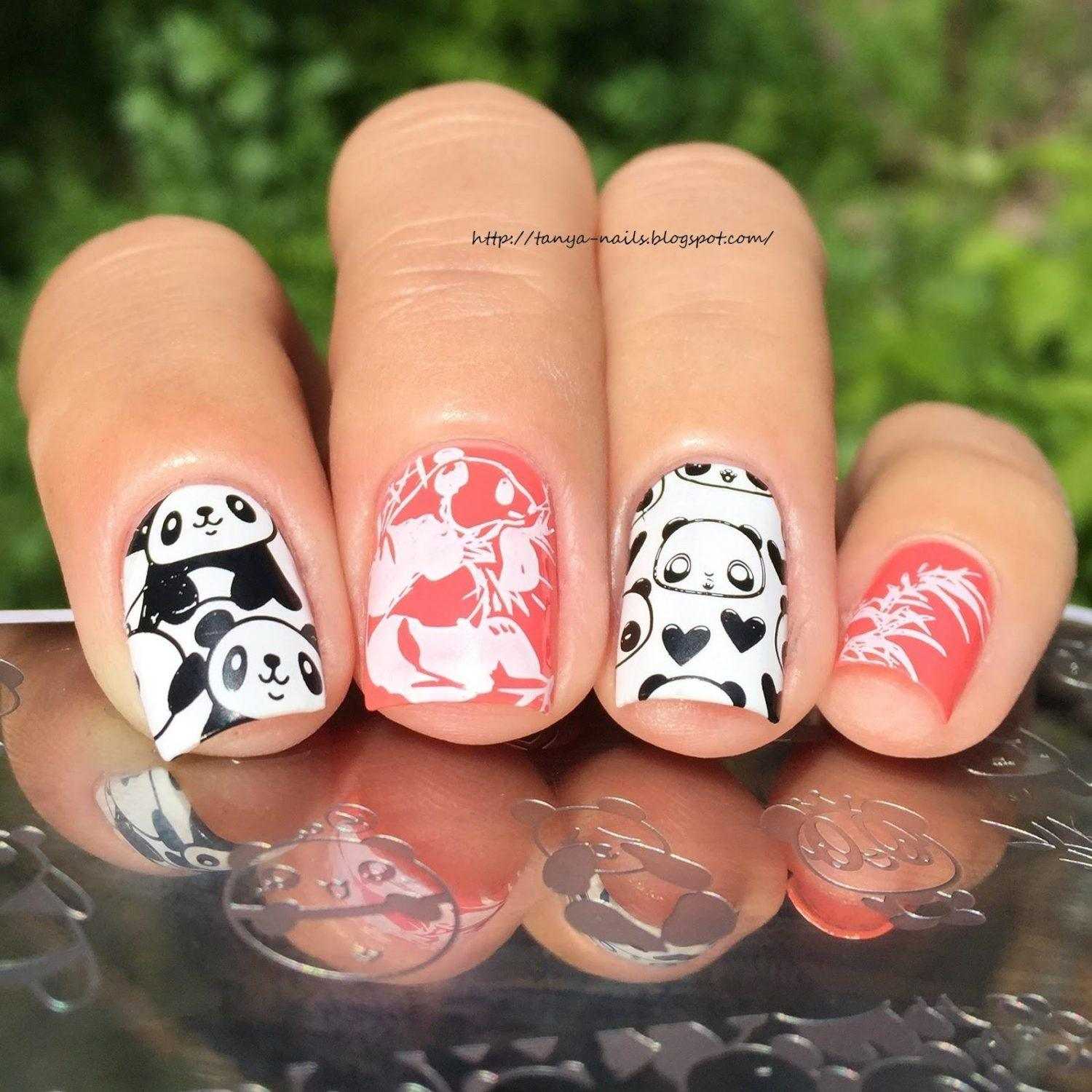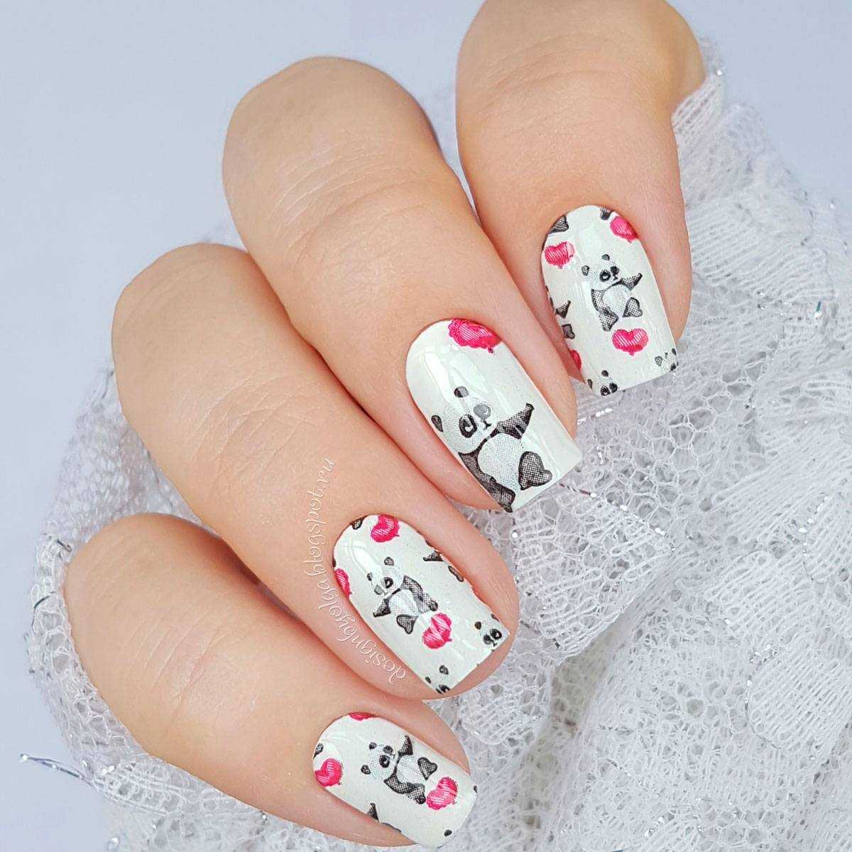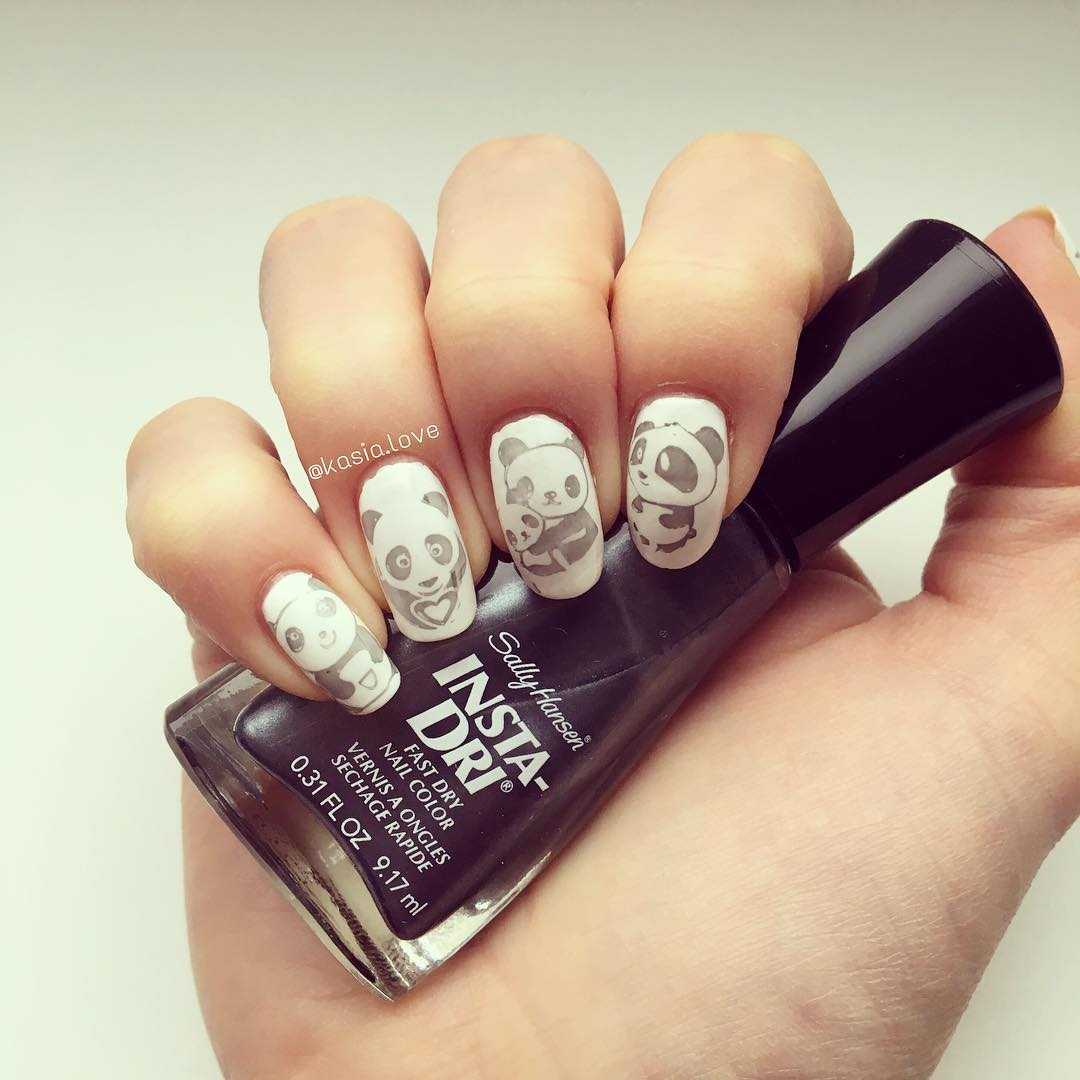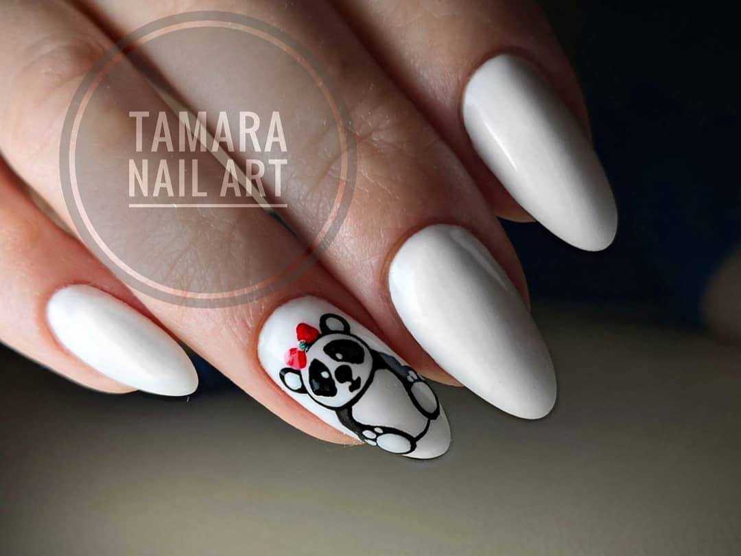 Учитывая, что панда – это милое и добродушное животное, то для выполнения маникюра лучше брать за основу нежные и светлые оттенки. Само изображение панды выполняется в черно-белом цвете, поэтому фон должен быть как можно светлее.